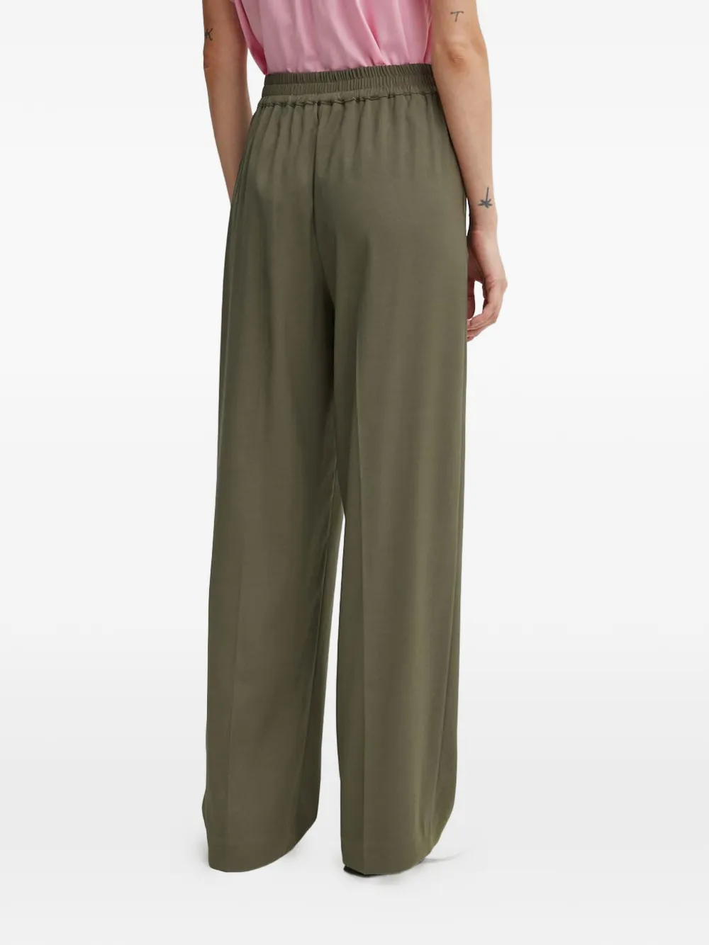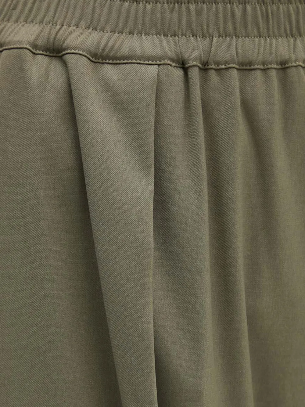 Оливково-зеленые широкие брюки с эластичным поясом и складками