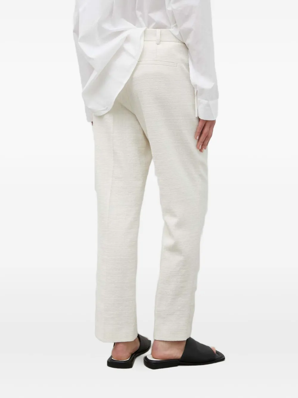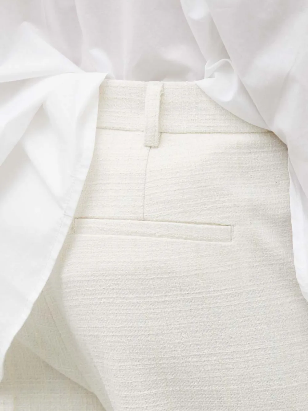 Белый с текстурным эффектом, шлевки для ремня, прорезной задний карман, скрытая застежка