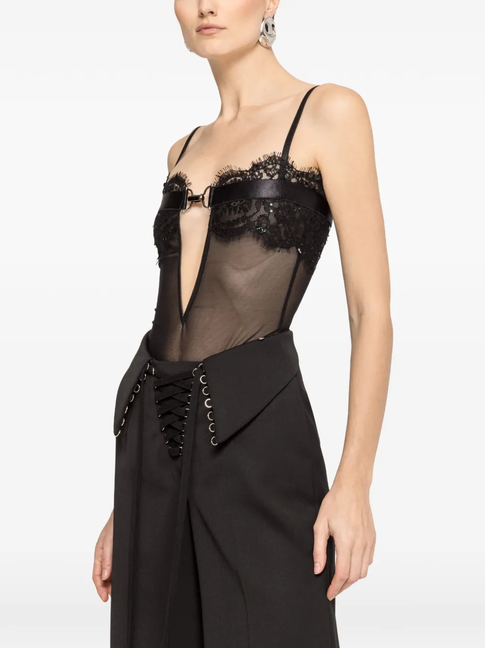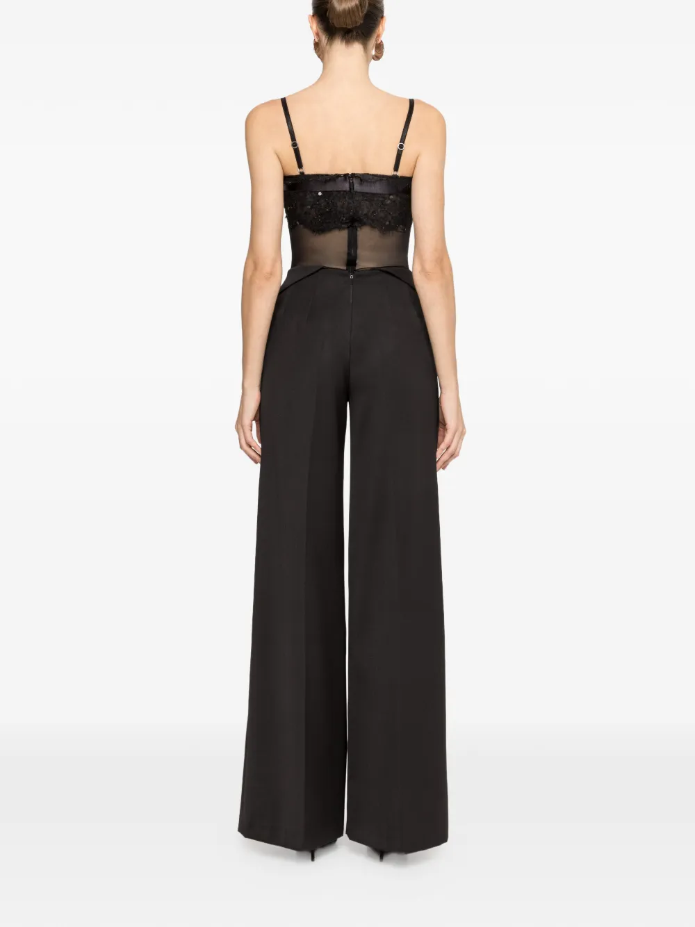 Черные брюки с шнуровкой спереди, широкими штанинами и застежкой-молнией сзади