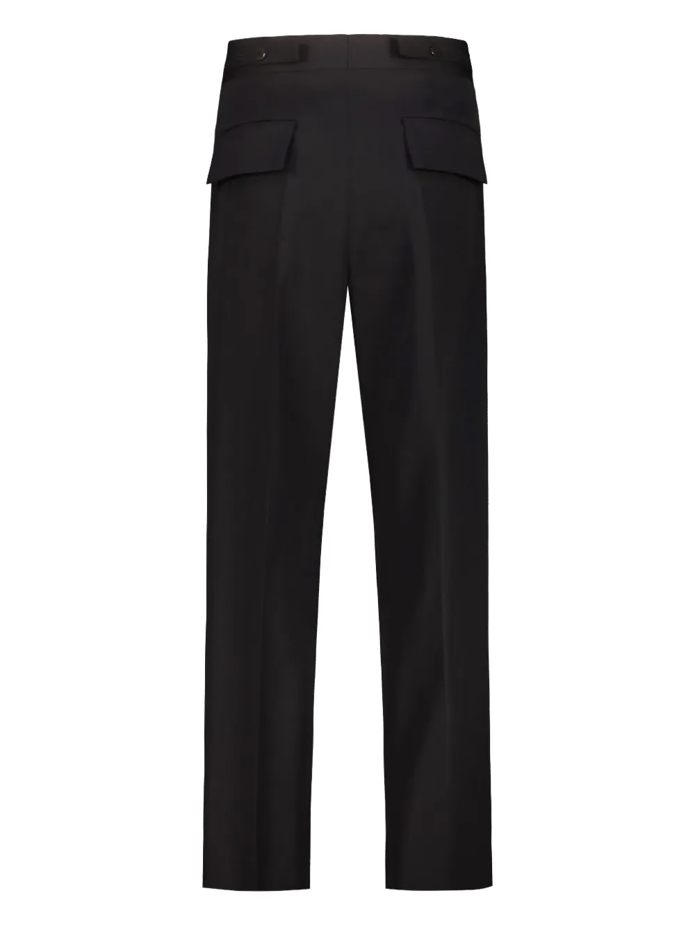 Черная шерсть, клапаны на карманах, шлевки для пояса, скрытая застежка