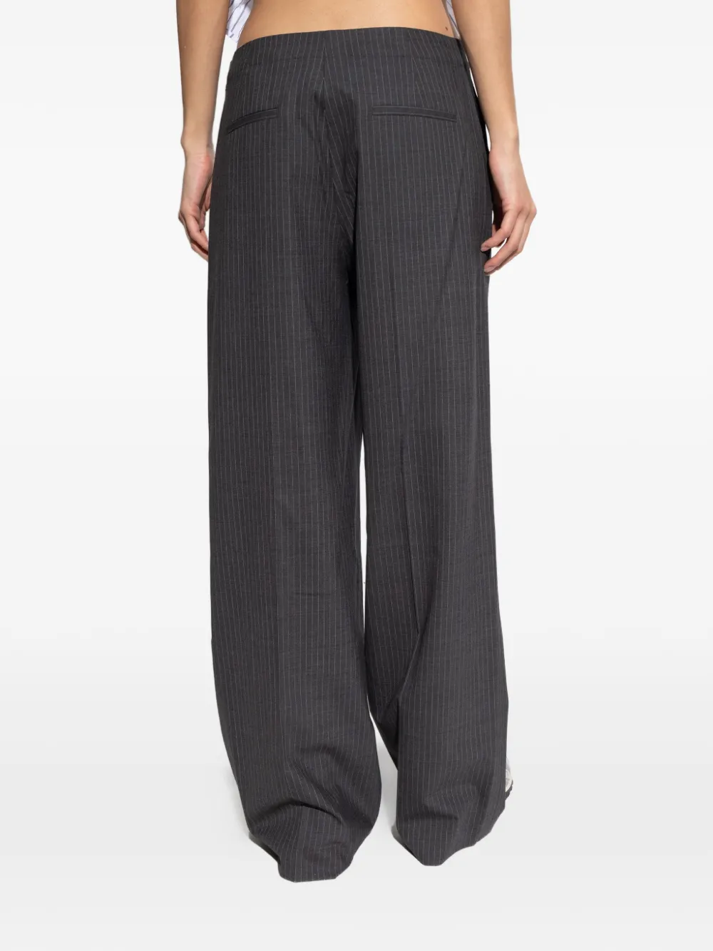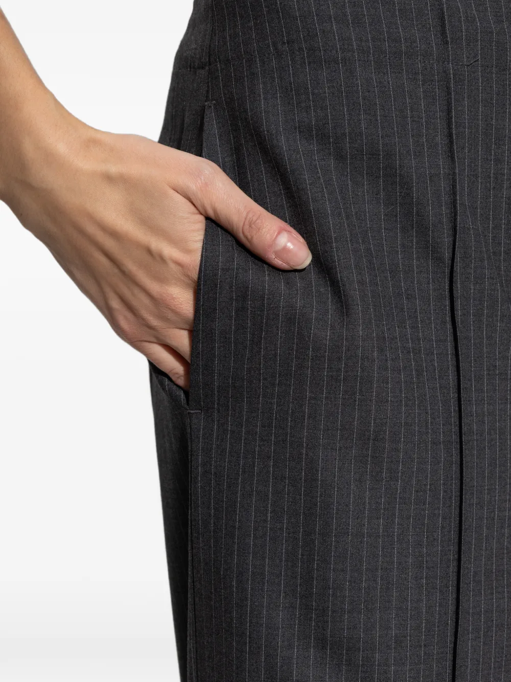 Серые широкие брюки в тонкую полоску с накладными карманами