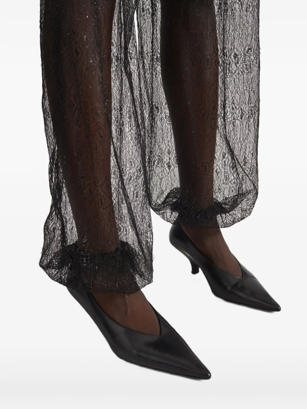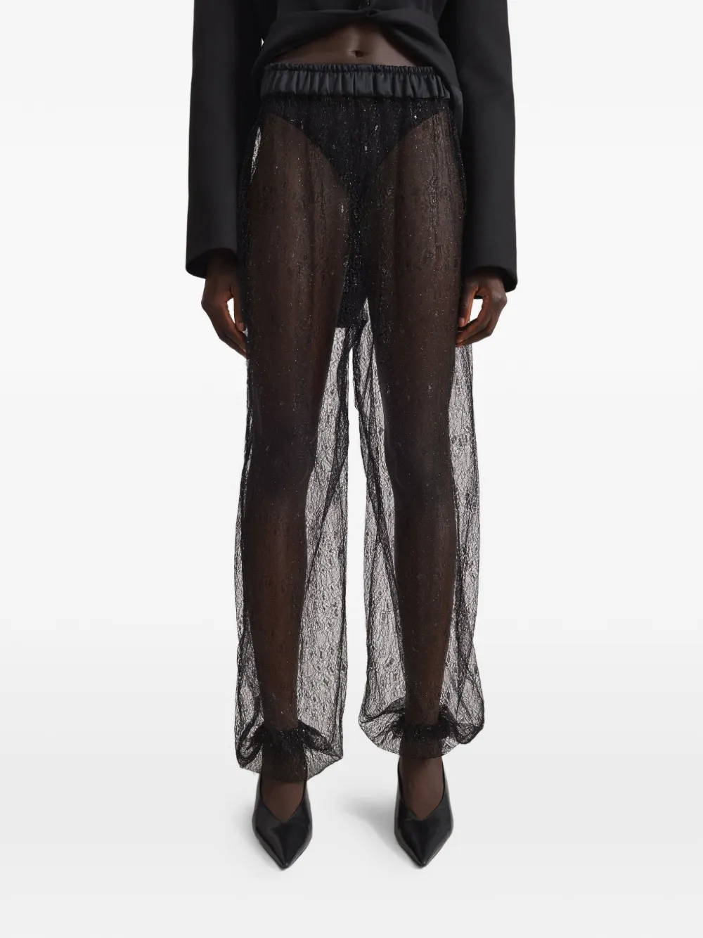 Черные воздушные свободные брюки с эластичной талией из прозрачной ткани