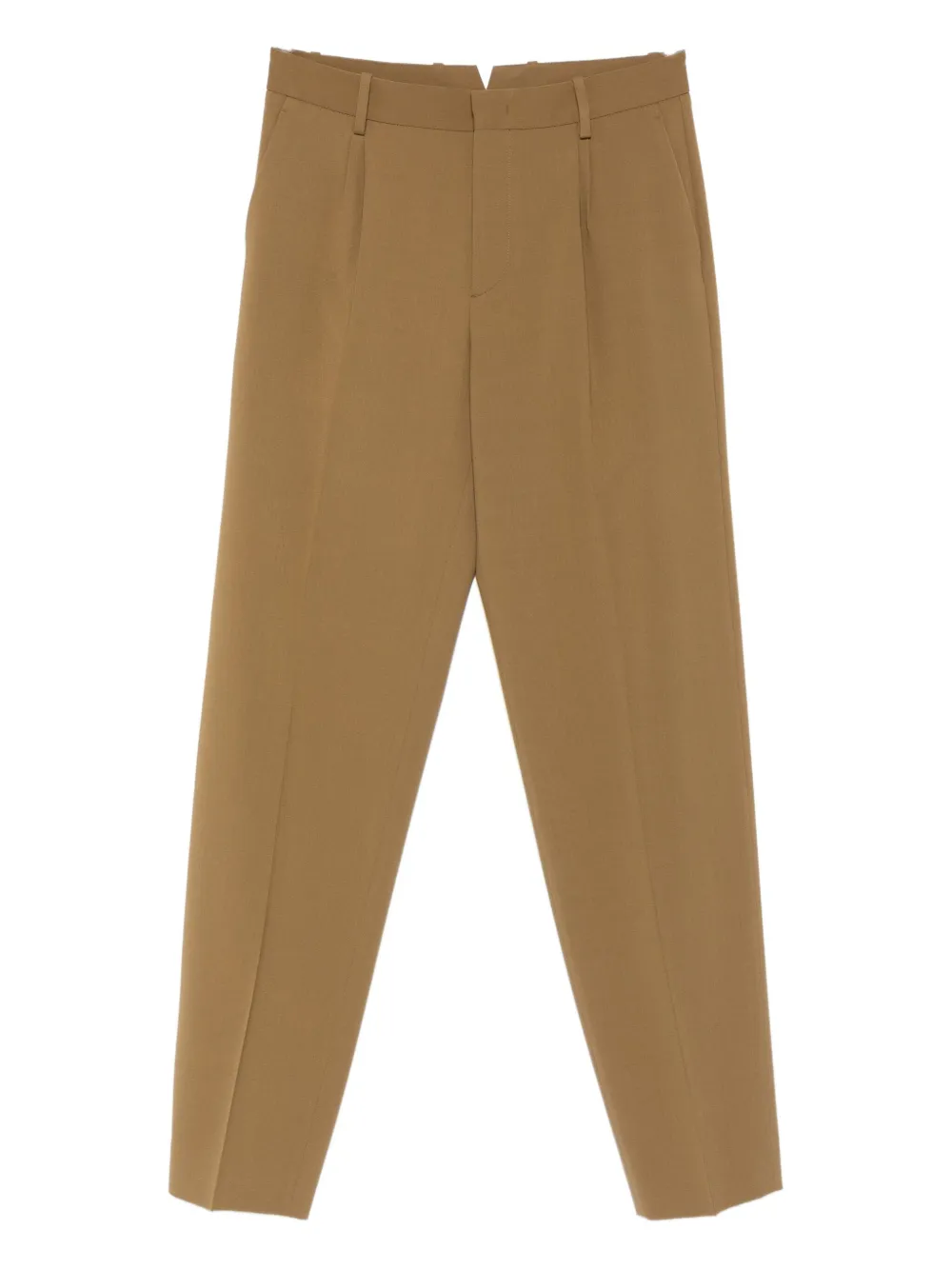 Коричневый шлевки для ремня складки спереди боковые карманы с прорезью задние прорезные карманы потайная застежка спереди