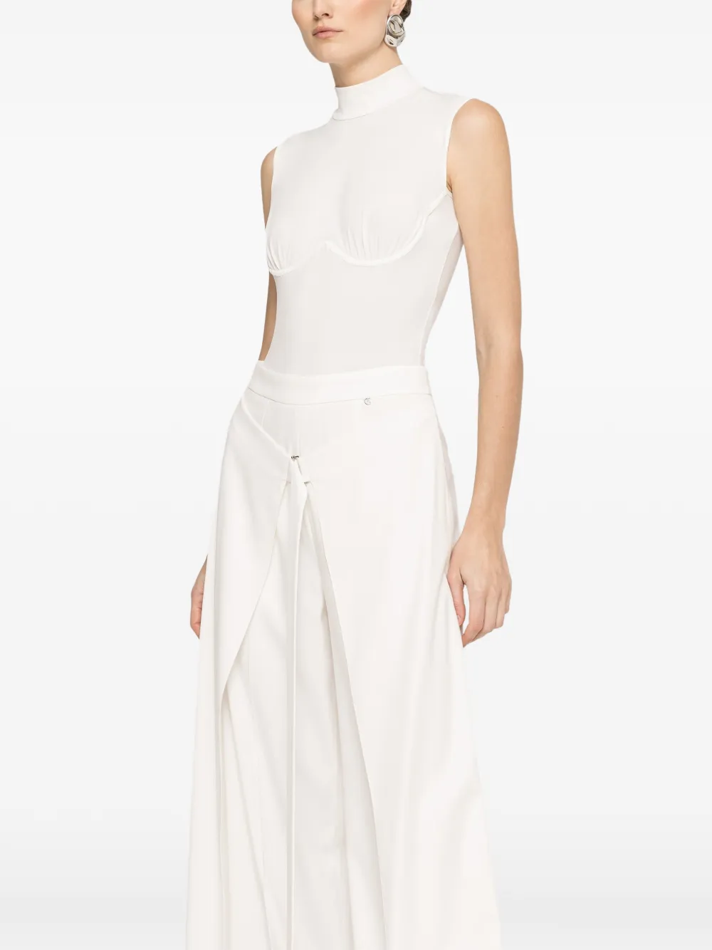 Белые широкие брюки с многослойным дизайном и задними карманами