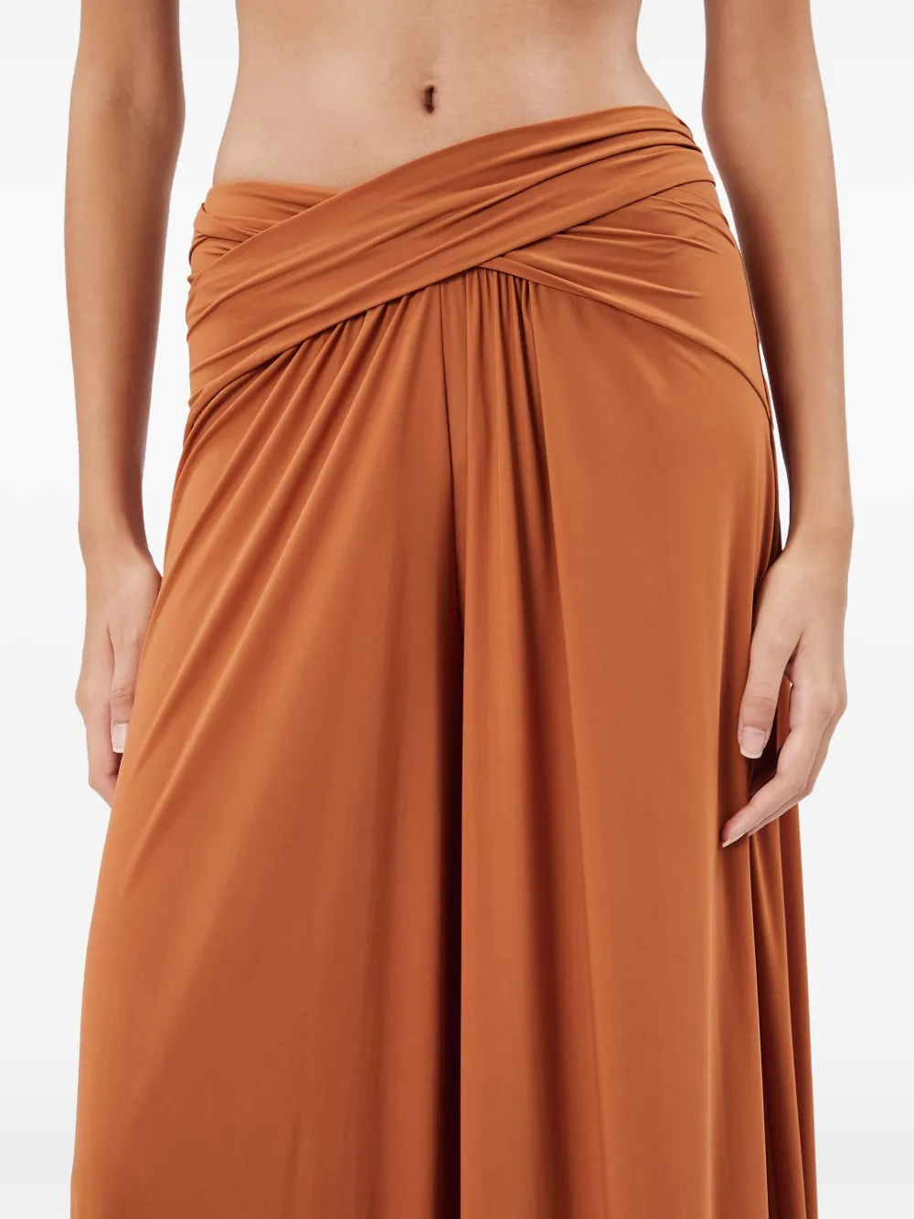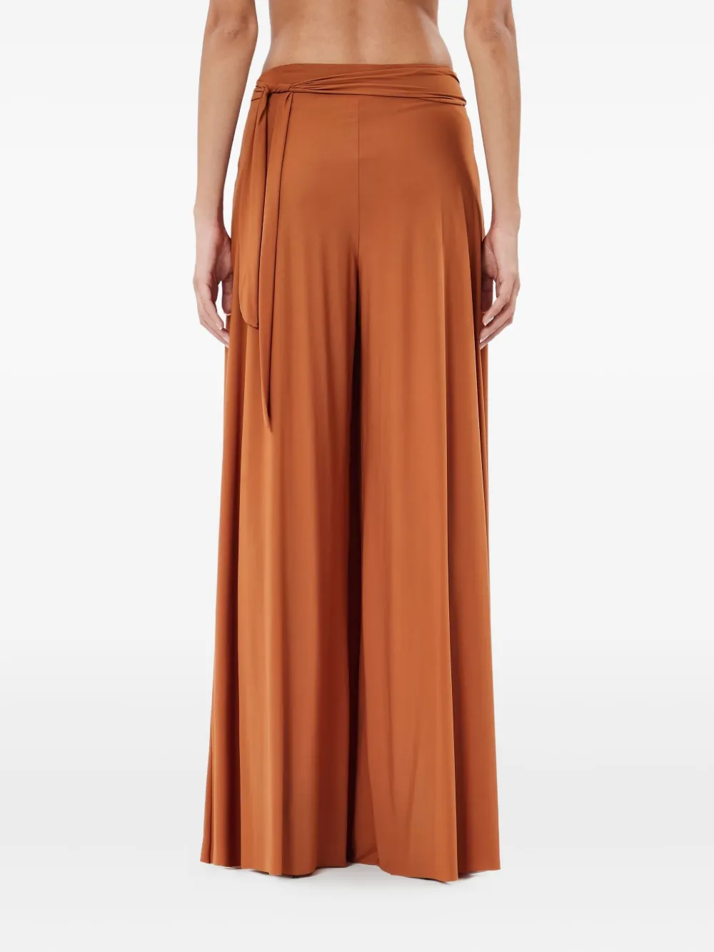 Коричневый декор на талии крест-накрест широкие брючины высокая талия драпированная ткань модель без застежки