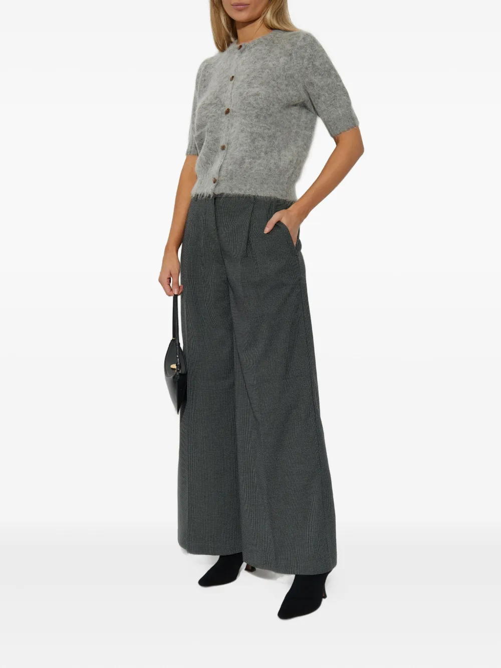 Угольно-серый узор "гусиная лапка" передние складки широкие брючины высокая талия скрытая застежка спереди
