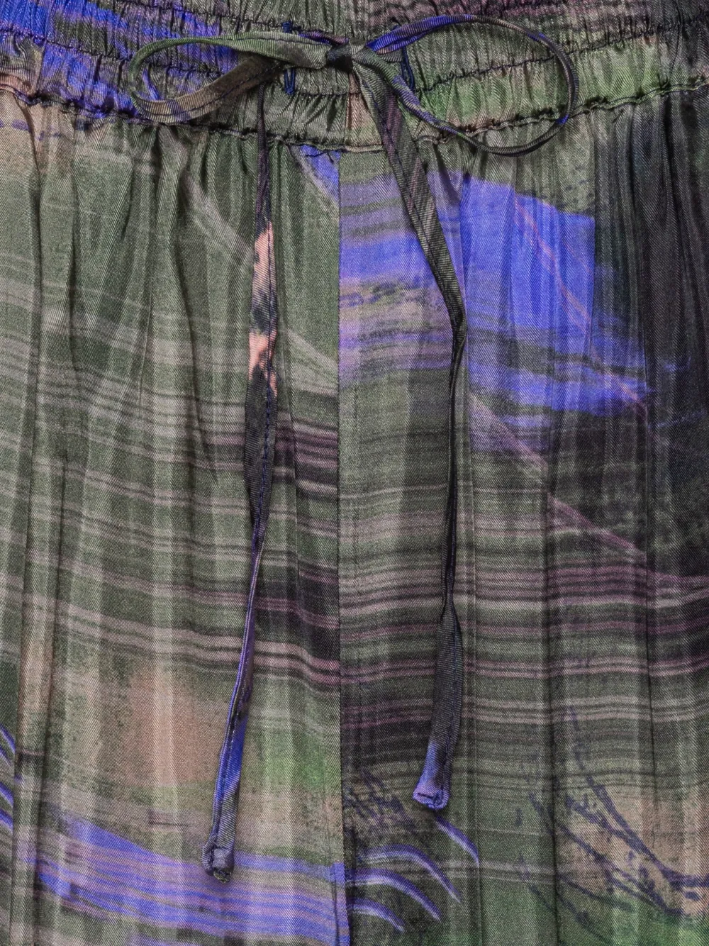 Черный/многоцветный графический принт, эластичный пояс на завязке, ярусные детали