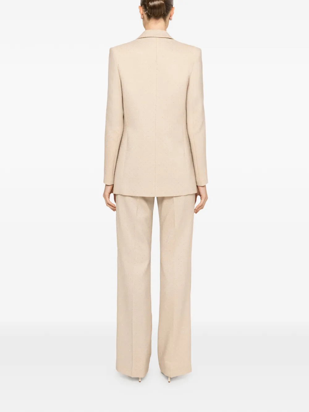 Бежевые прямые брюки с украшением из страз и боковыми карманами