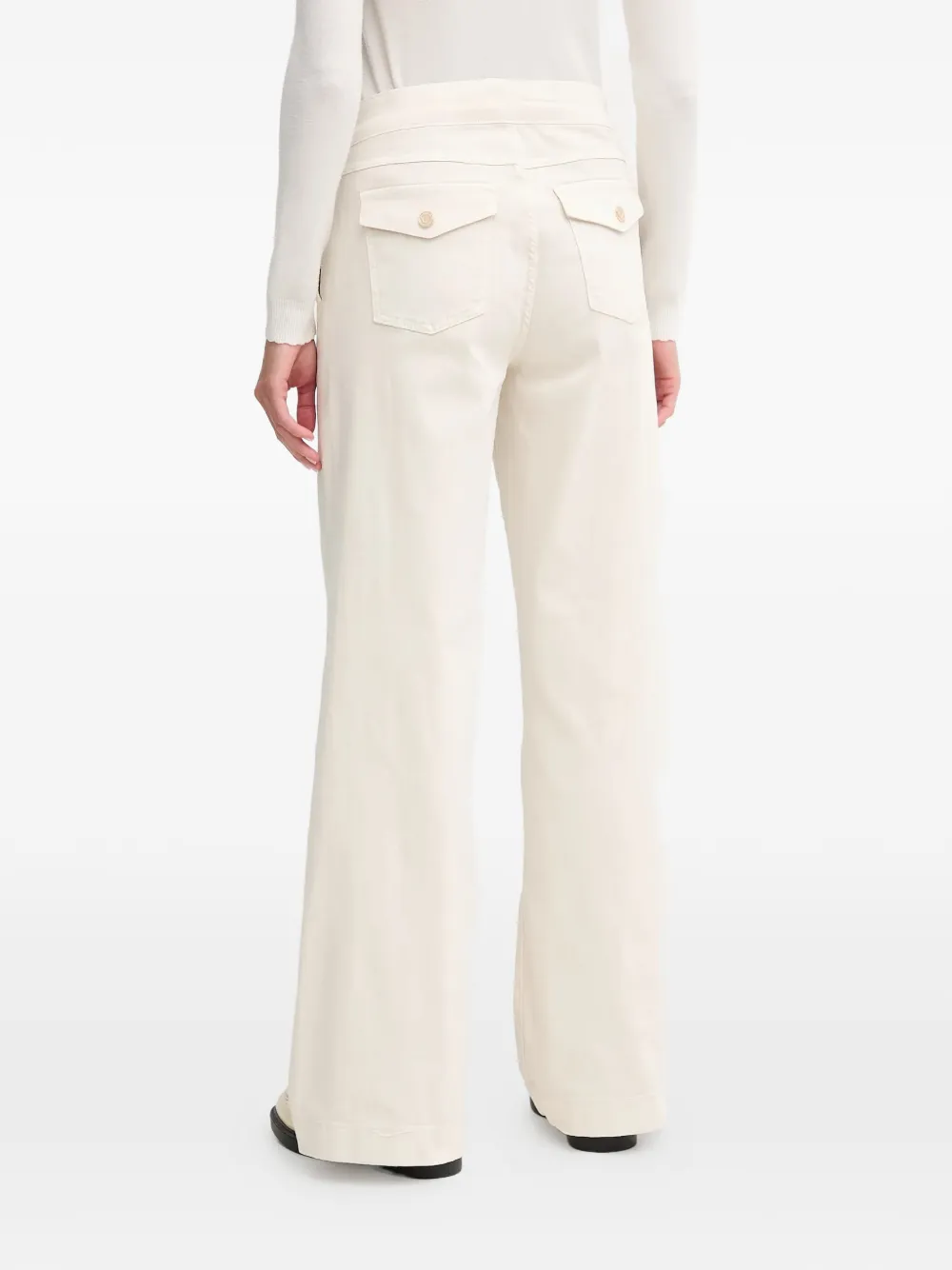 Кремовые широкие брюки с пуговицами и задними накладными карманами