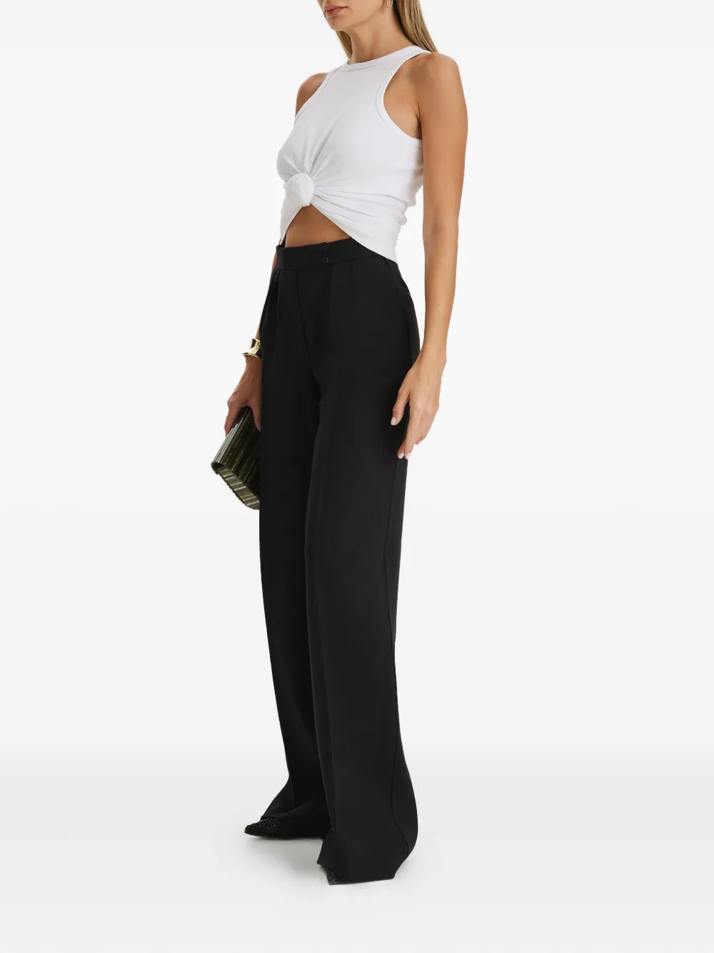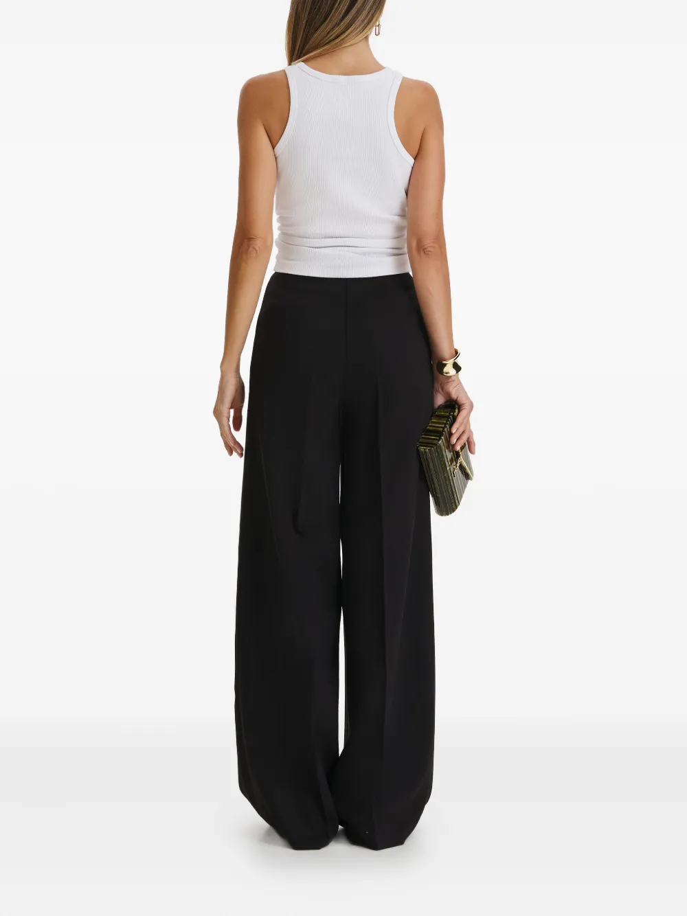 Черные, плиссированные спереди, боковые карманы в швах, скрытая застежка