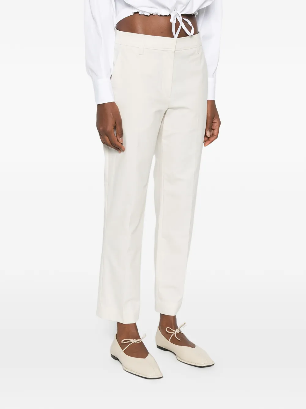 Бежевые шлевки для ремня, боковые прорезные карманы, скрытая застежка