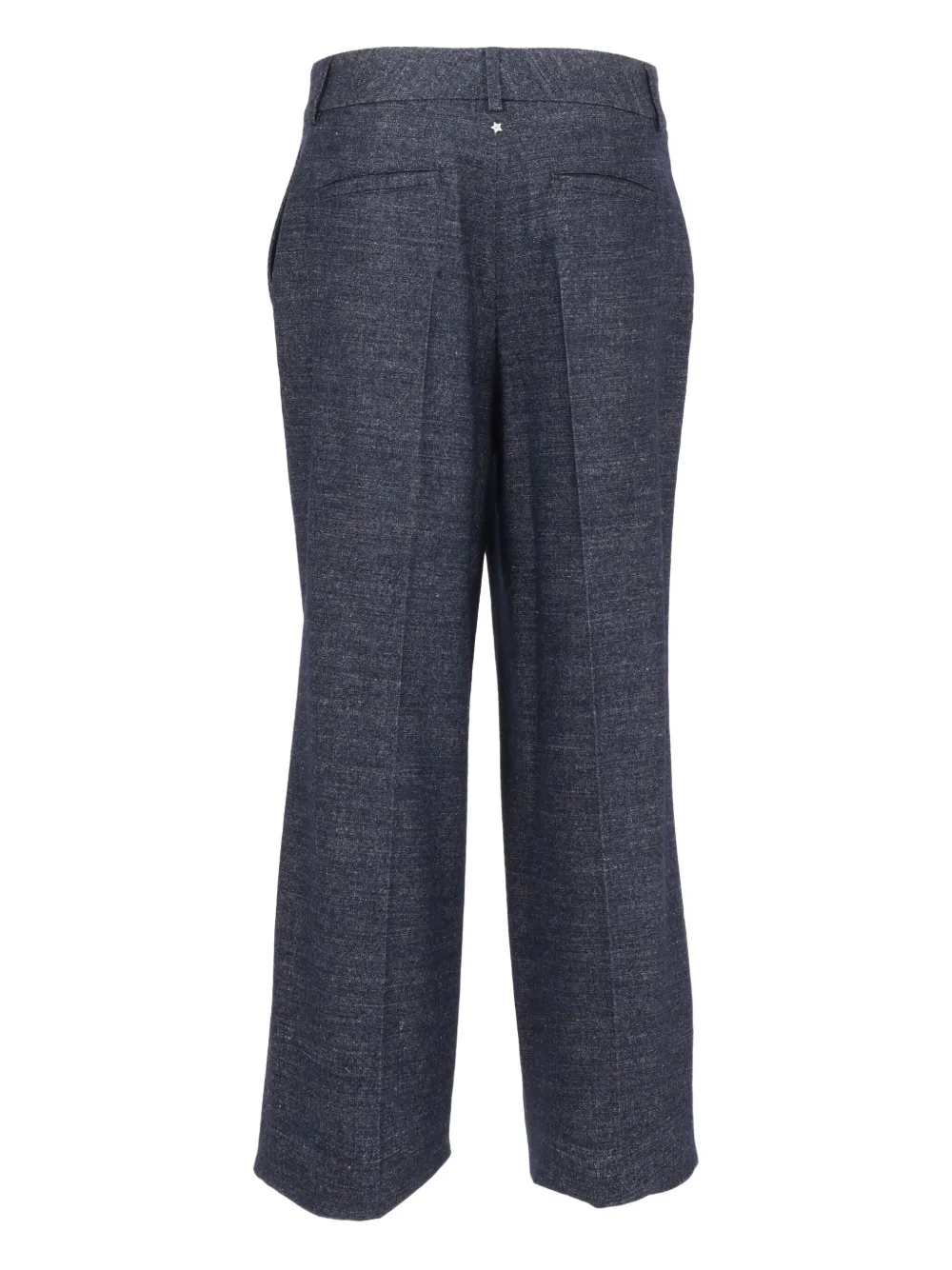 Темно-синие брюки с текстурированной отделкой, шлевками для ремня, боковыми прорезными карманами, задними прорезными карманами и застежкой на пуговицу