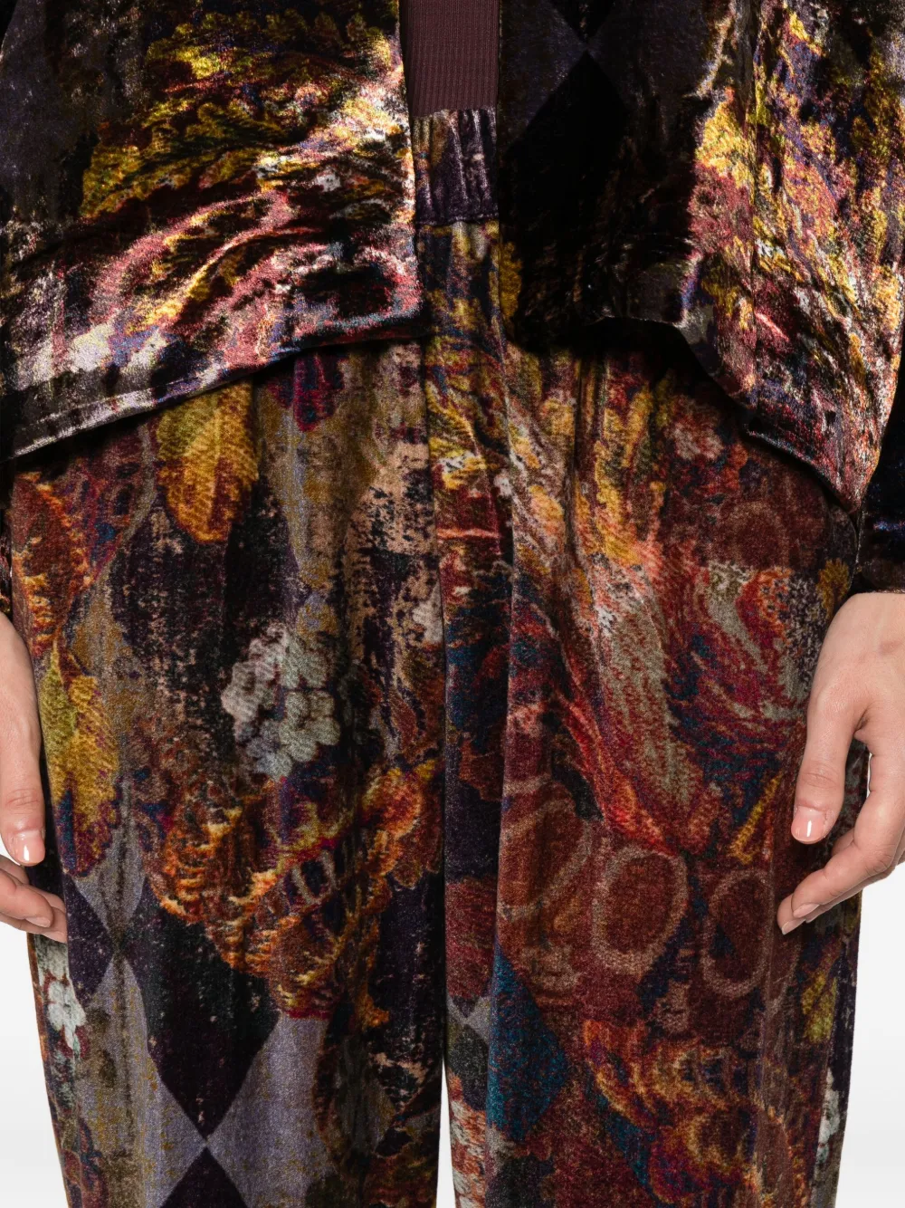 Коричневые брюки с цветочным принтом, ромбовидным узором, боковыми карманами и эластичным поясом