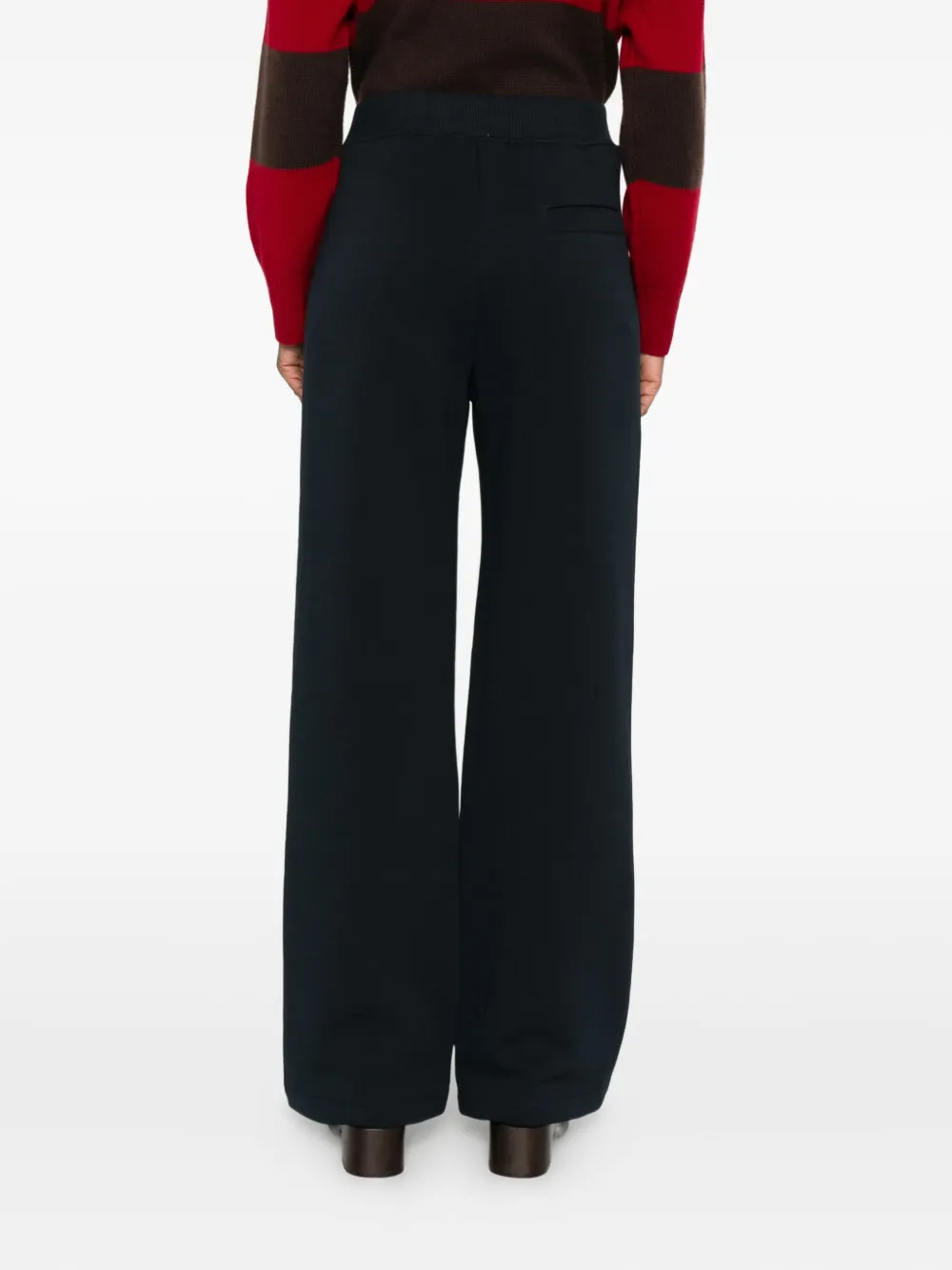 Темно-синий ребристый пояс отделка швов прямые брючины боковые прорезные карманы