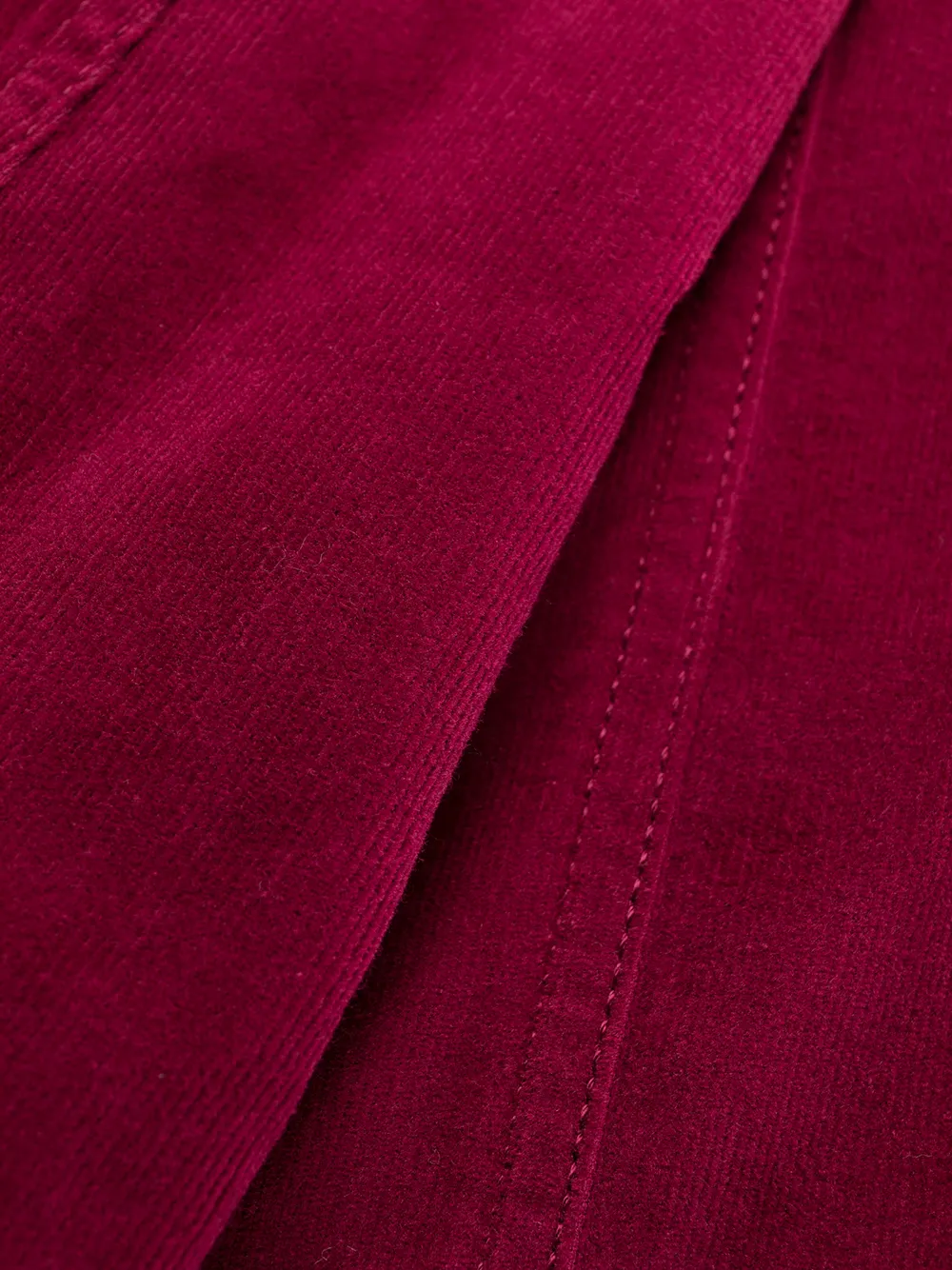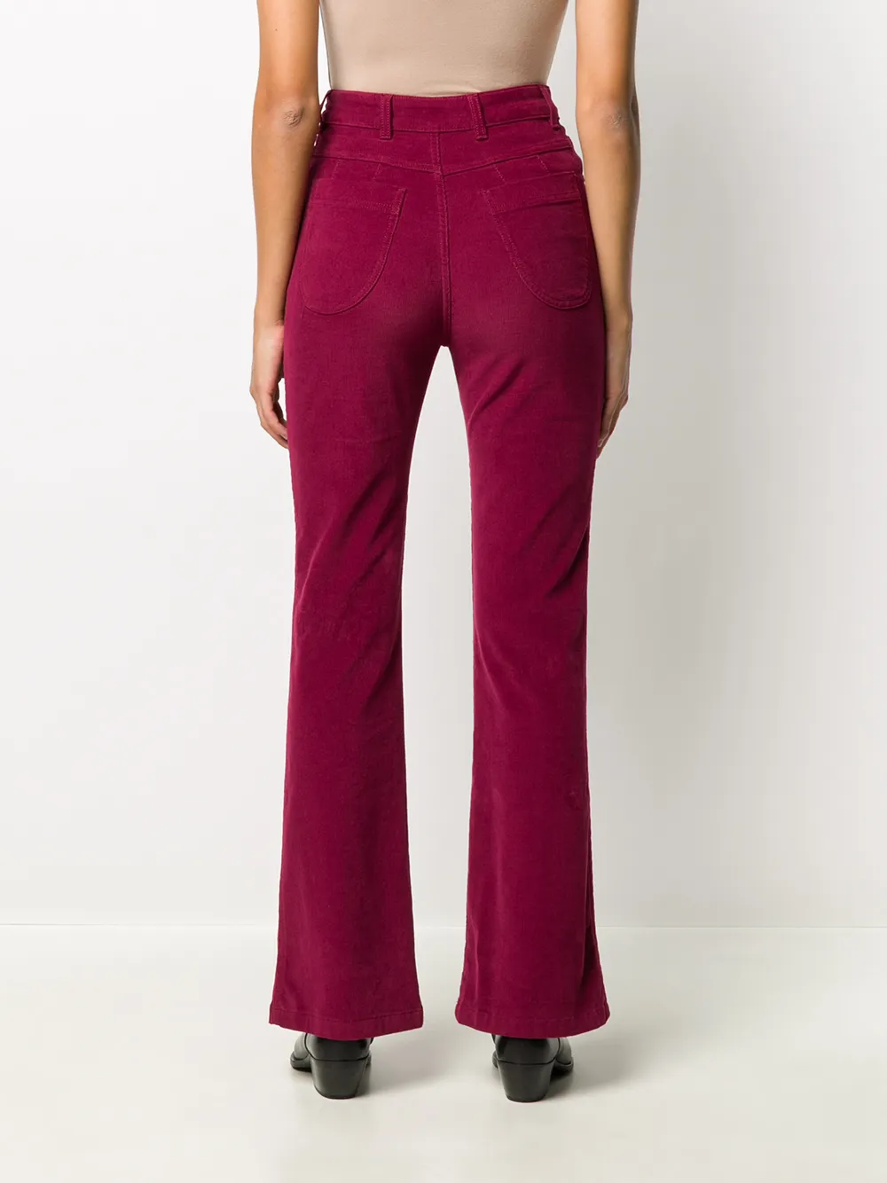 Завышенная талия, петли для ремня, потайная застежка спереди, классическая пятикарманная модель, вышитый логотип и расклешенная юбка.