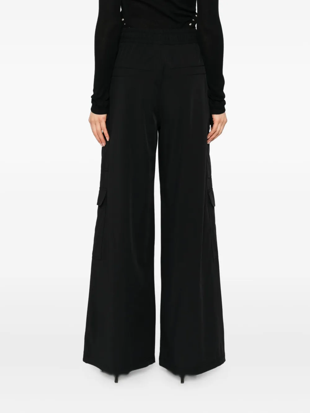 - широкий крой: брюки плотно сидят на талии, но не облегают ноги