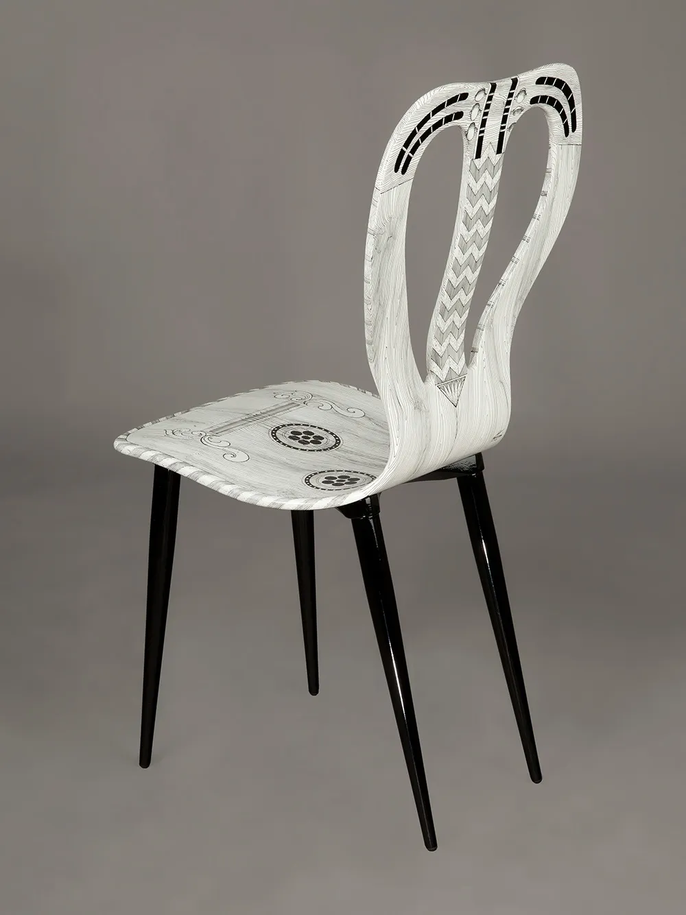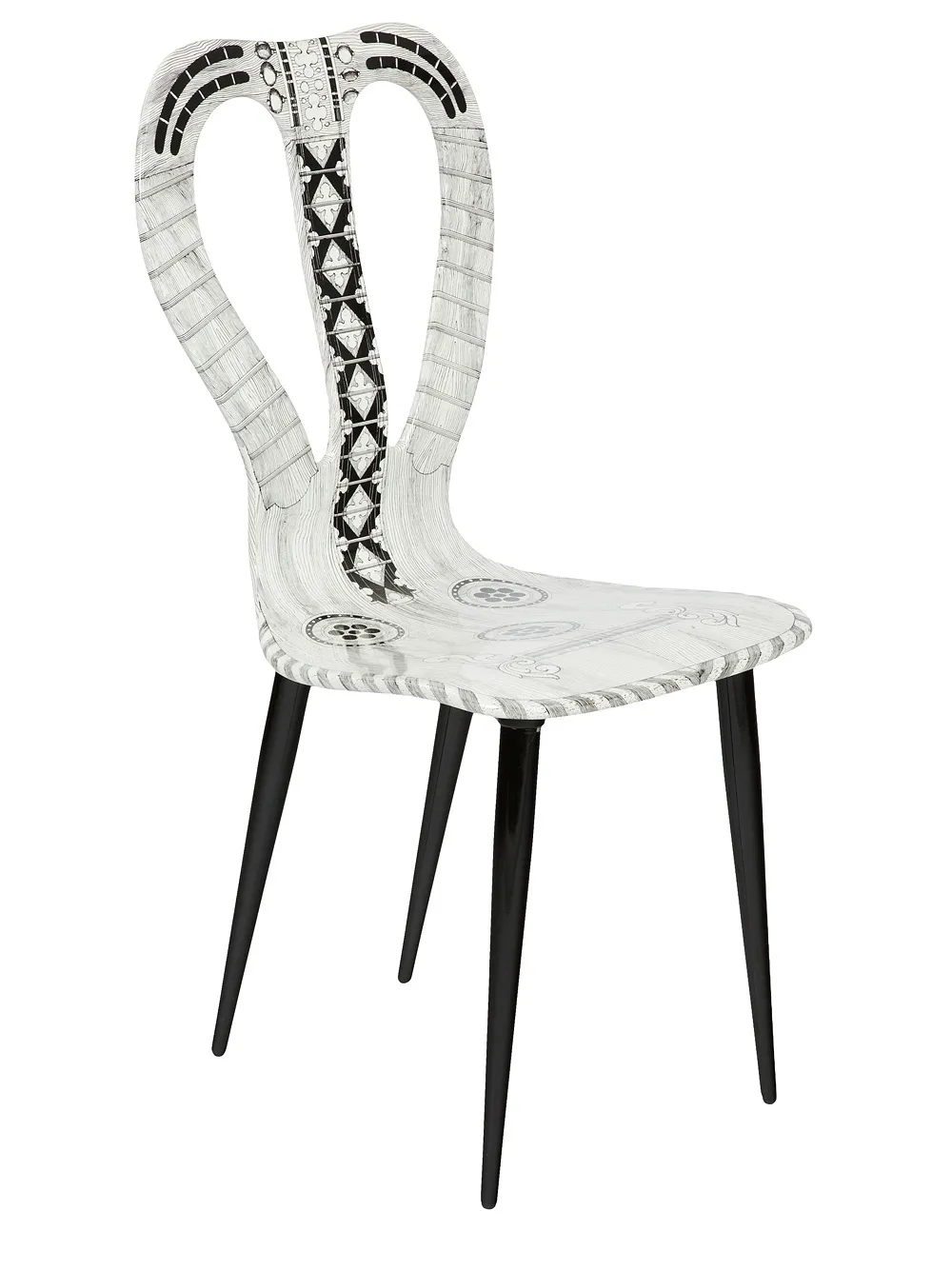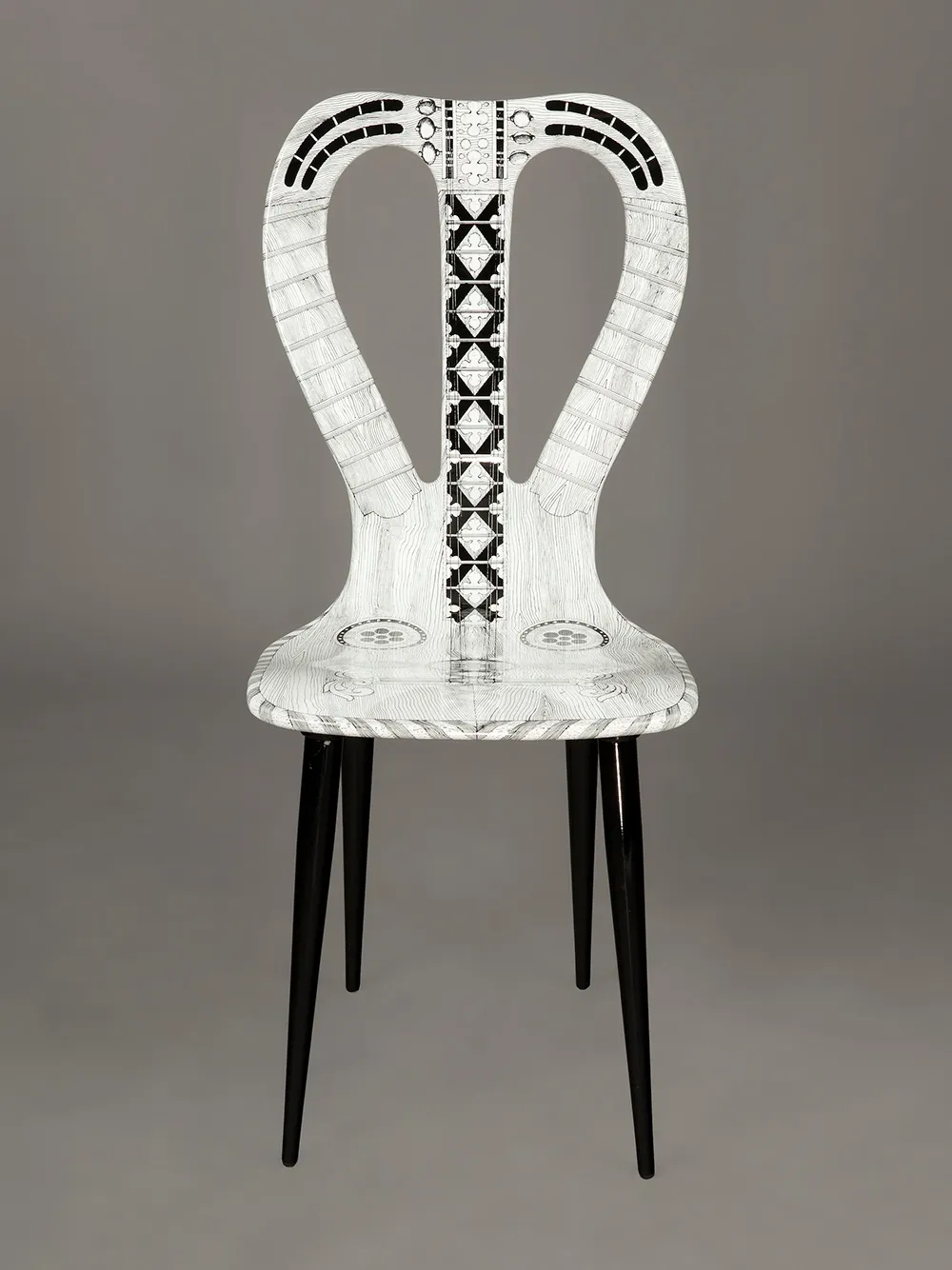 Черно-белый деревянный стул 'Guitar' от Fornasetti.