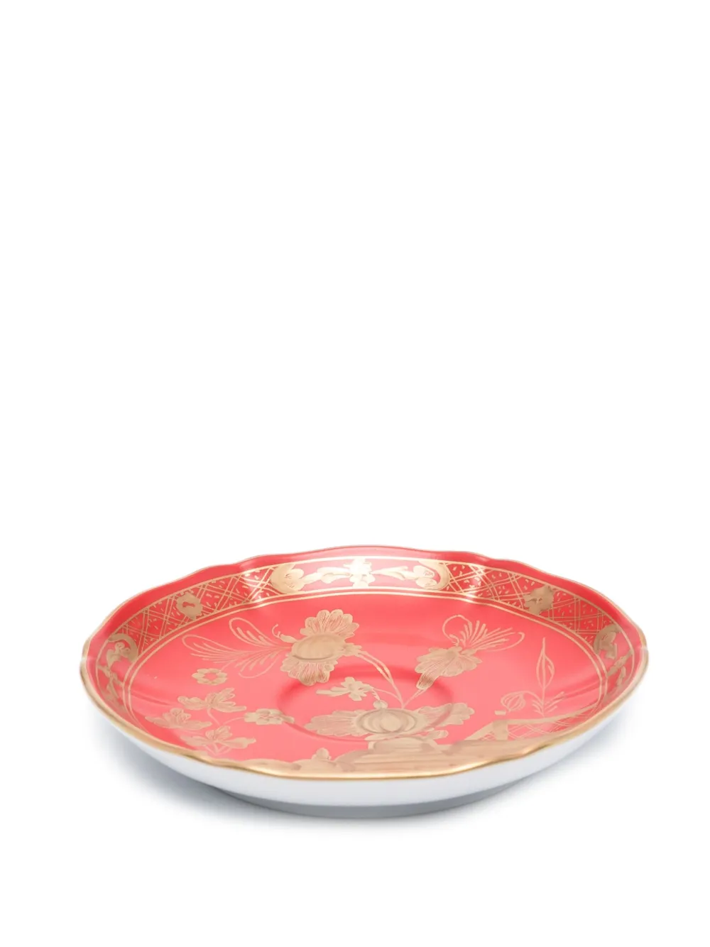 Красный, золотистый, фарфор, ручная роспись, принт с логотипом сзади, цветочный узор и набор из двух предметов.
