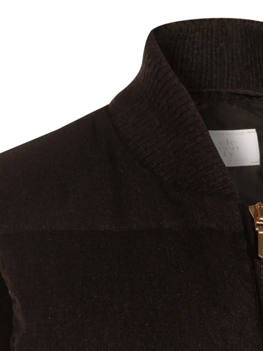 Темно-коричневый, стеганый дизайн, застежка-молния, стойка-воротник, карманы на молнии, без рукавов
