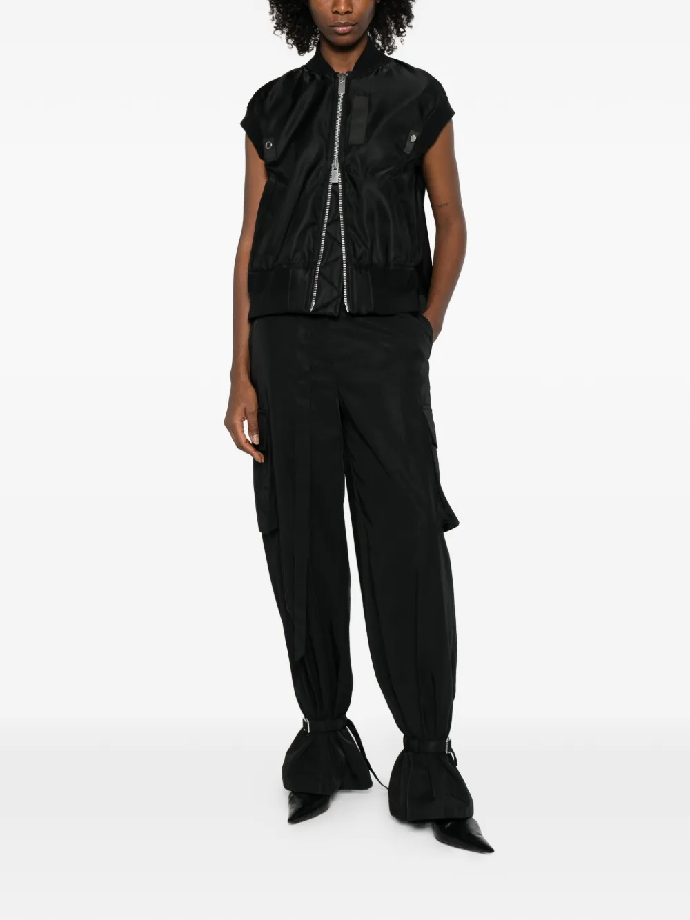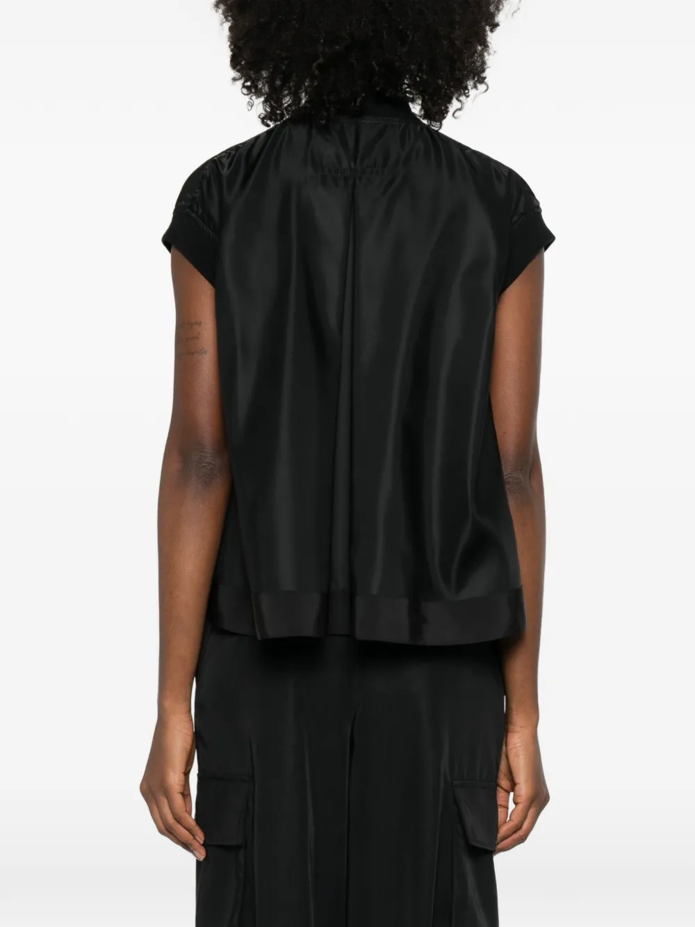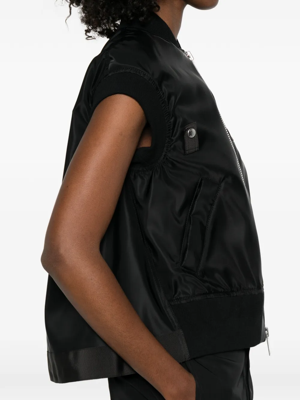 Черная бейсбольная куртка с застежкой-молнией, стойкой-воротником, короткими рукавами и прорезными карманами