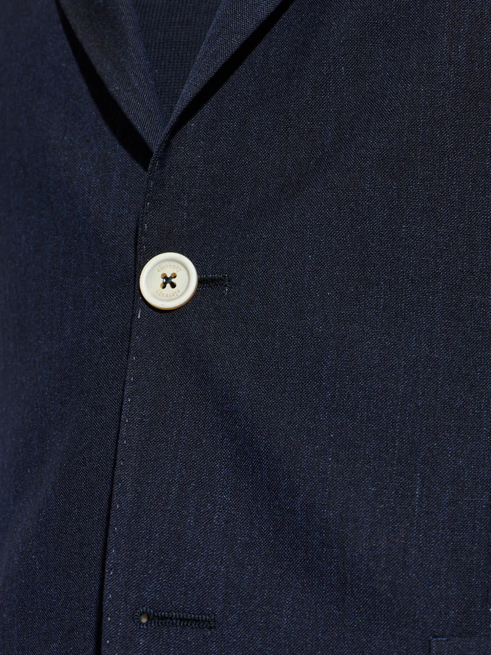 Темно-синий, с пуговицами, накладными карманами и завязкой на талии