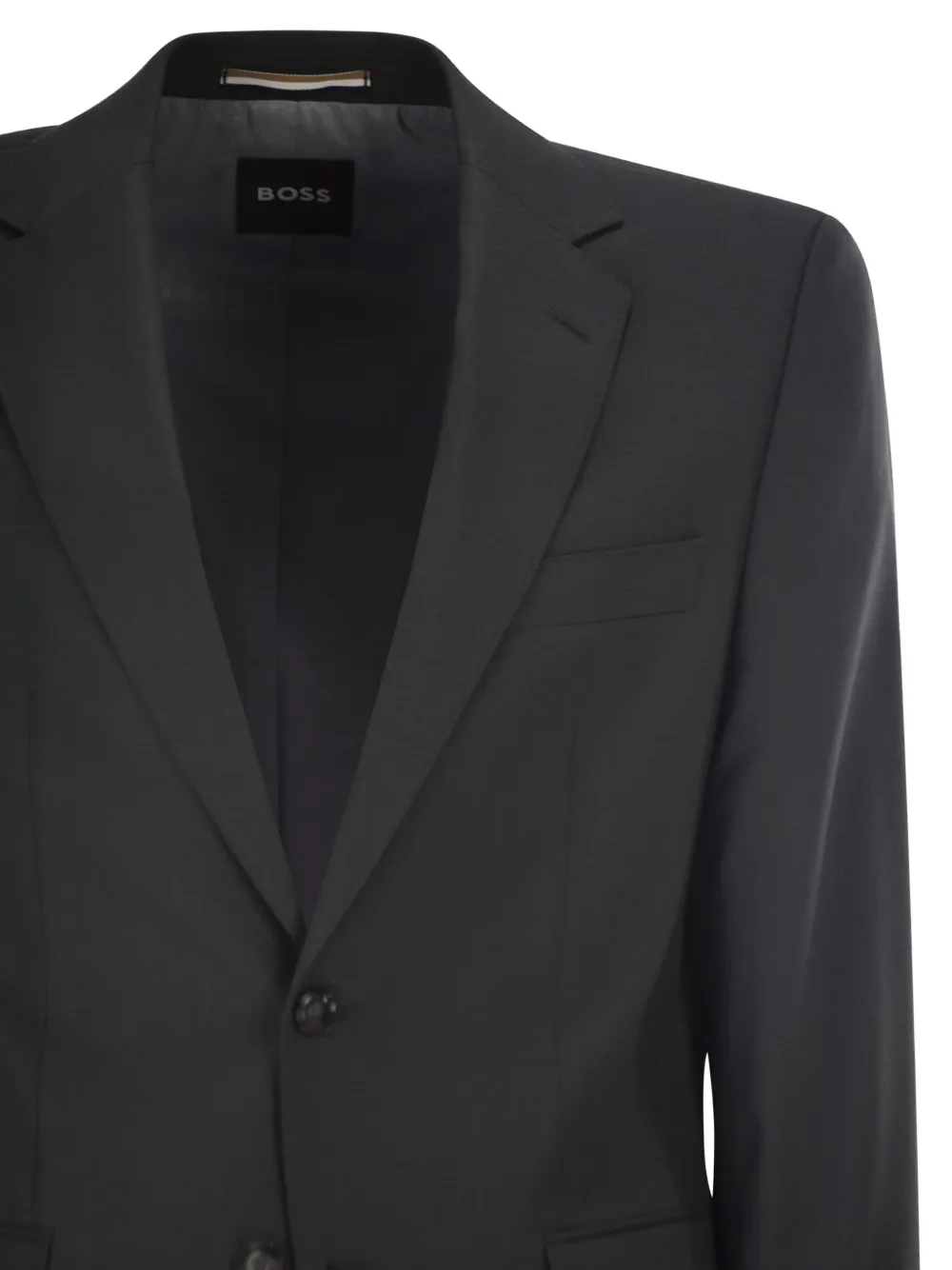 Темно-серый, клапанные карманы, манжеты на пуговицах, лацканы с выемкой