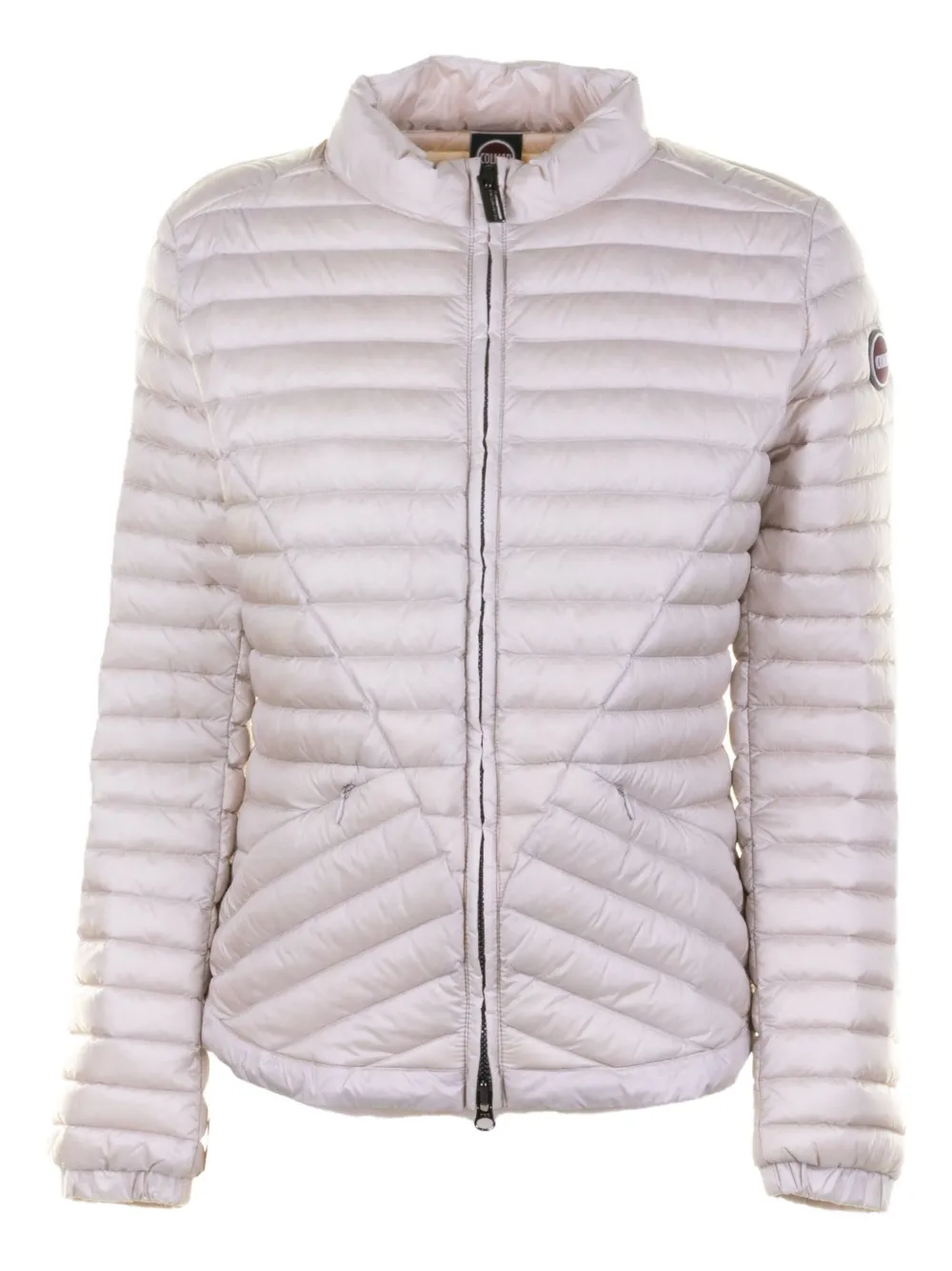 Розовый стеганая отделка высокий воротник застежка-молния спереди длинные рукава