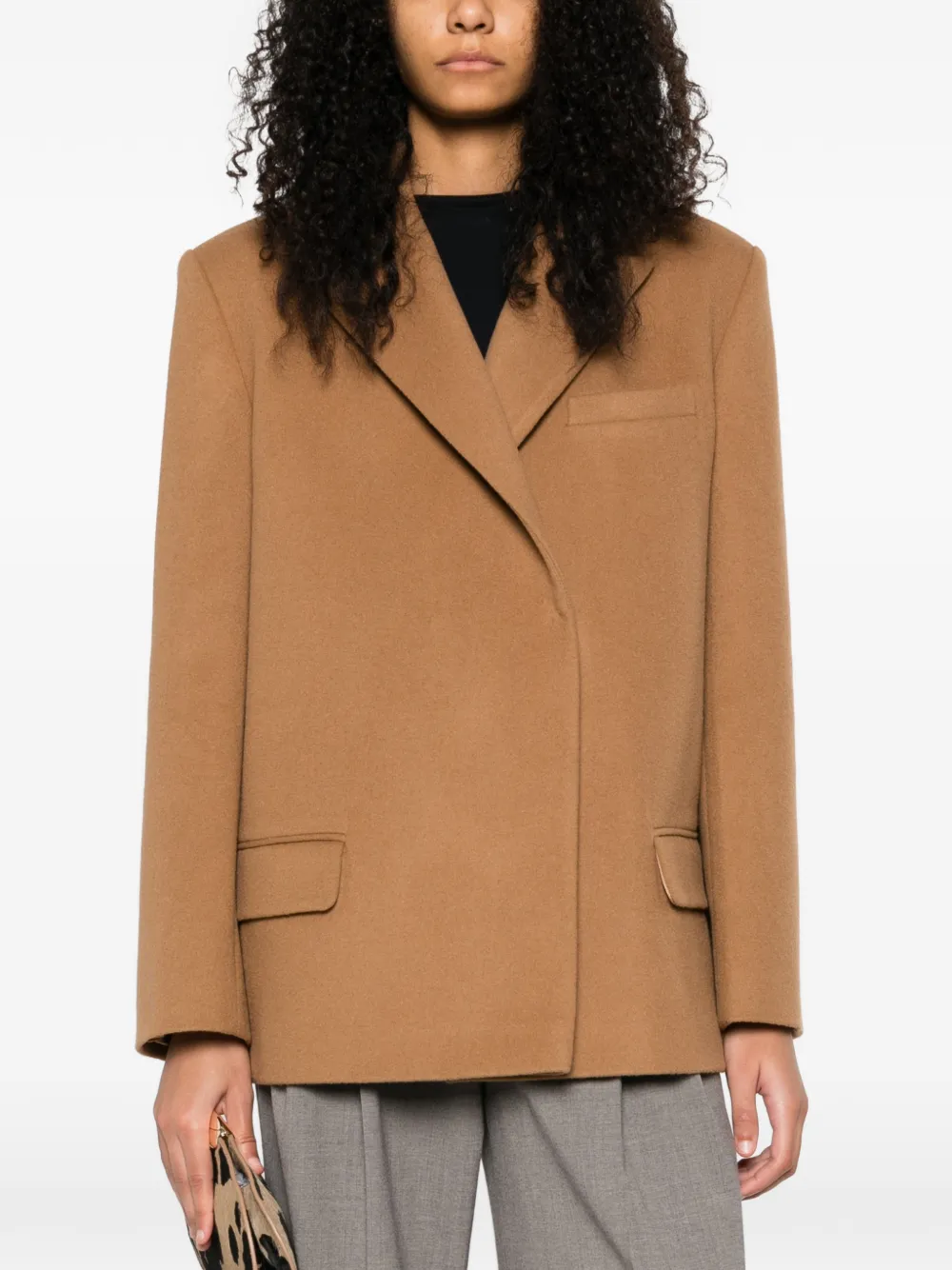 Верблюжий коричневый шерстяной с клапанами на карманах, длинные рукава