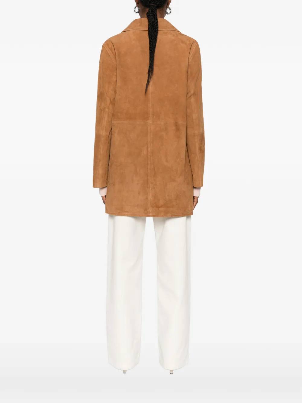 Виски замша кожаные лацканы с вырезом застежка на пуговицы накладные карманы длинные рукава