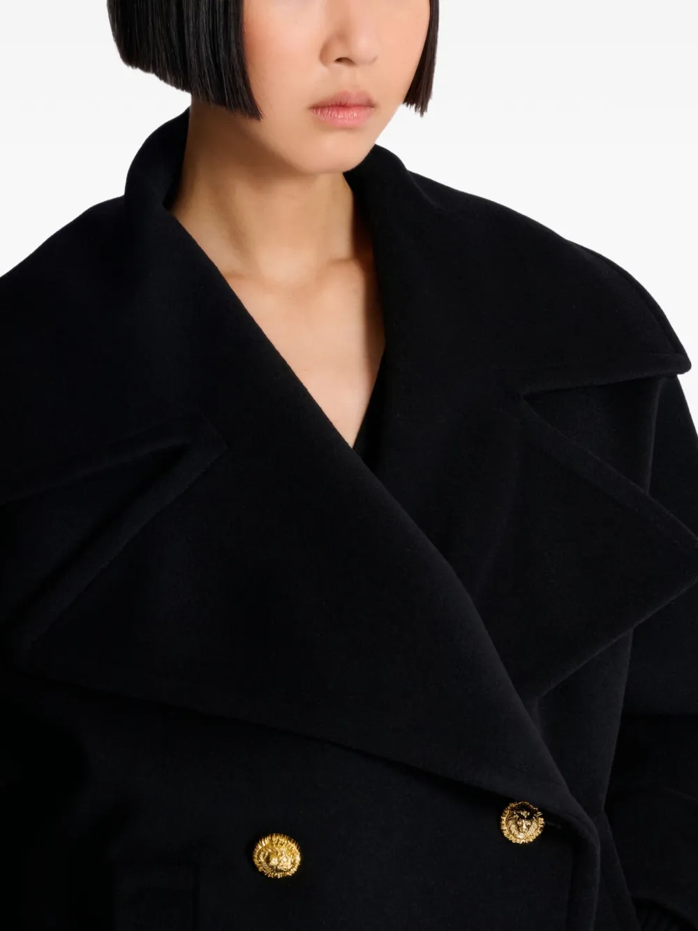 Двубортное бушлат Balmain, черный