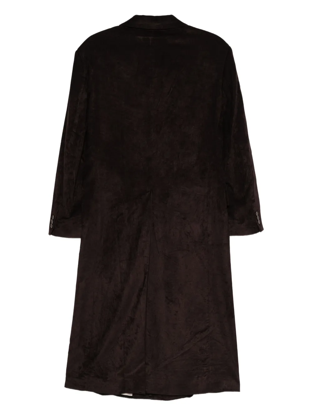 Темно-коричневый бархатистая текстура застежка на двубортные пуговицы длинные рукава накладные карманы с клапанами прямой низ