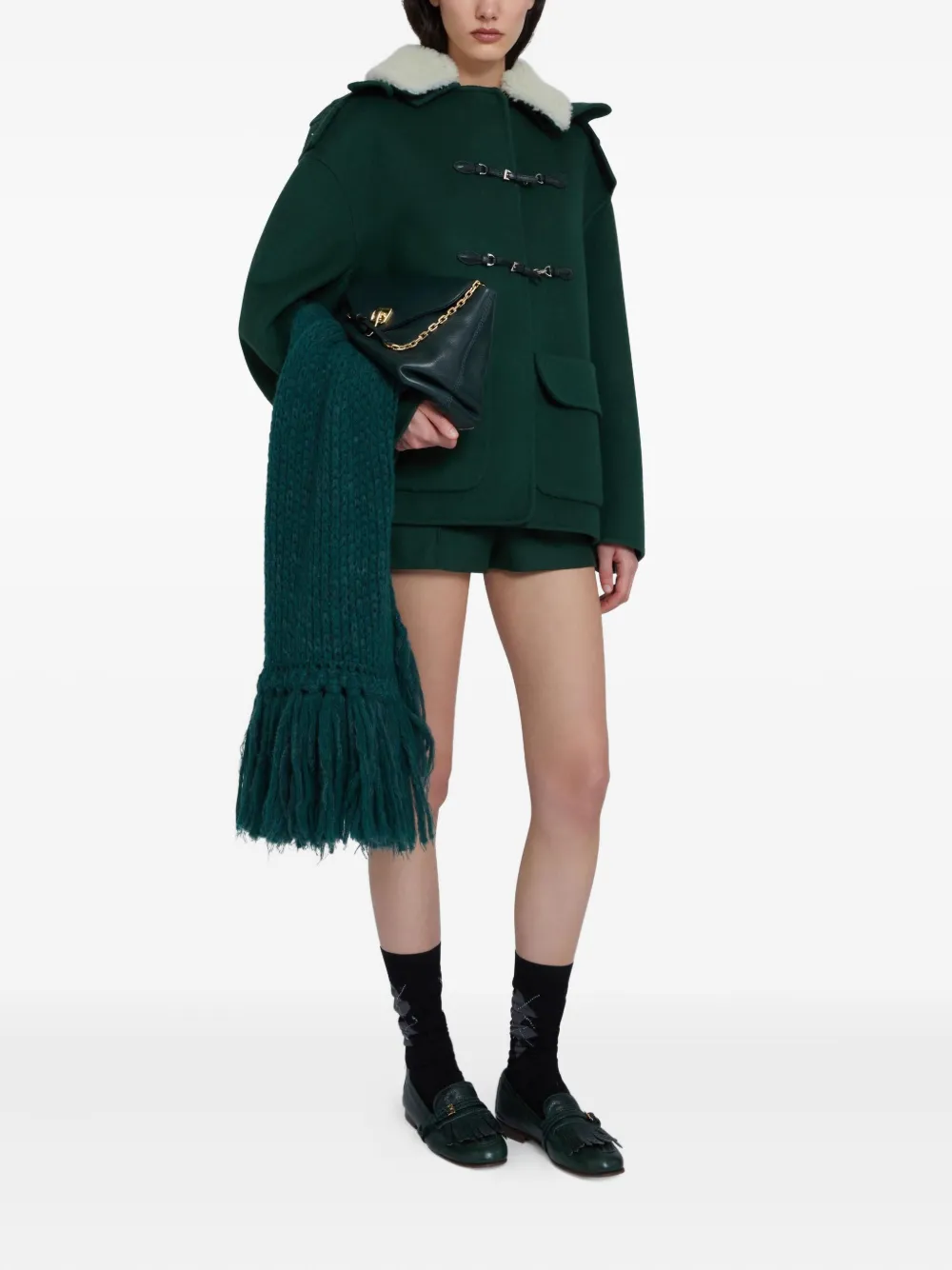 Пальто с капюшоном и меховым воротником Ermanno Scervino, зеленый
