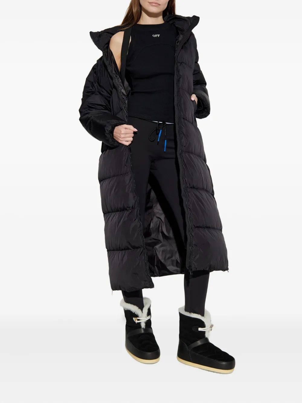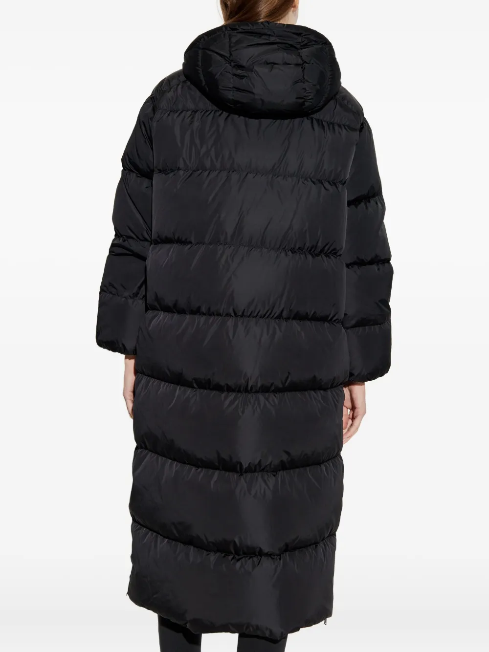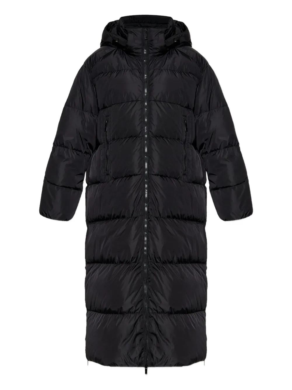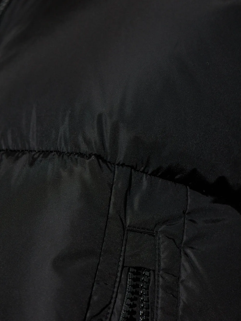 Черный цвет, стеганый дизайн, капюшон, застежка-молния, длинные рукава, передние карманы на молнии