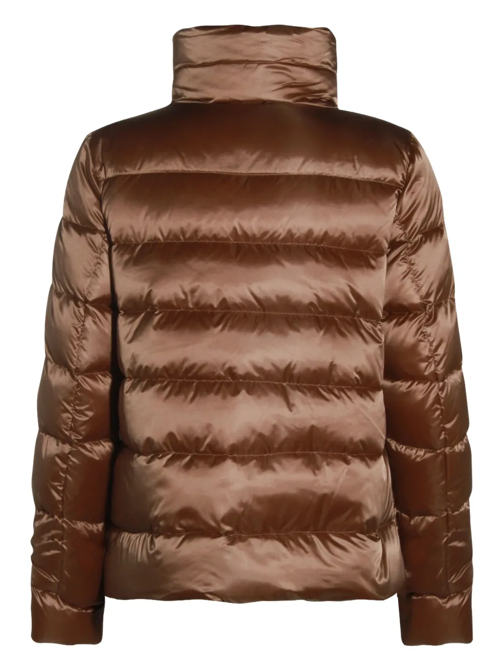 Коричневый сатиновая отделка стеганый дизайн высокий воротник застежка-молния боковые карманы