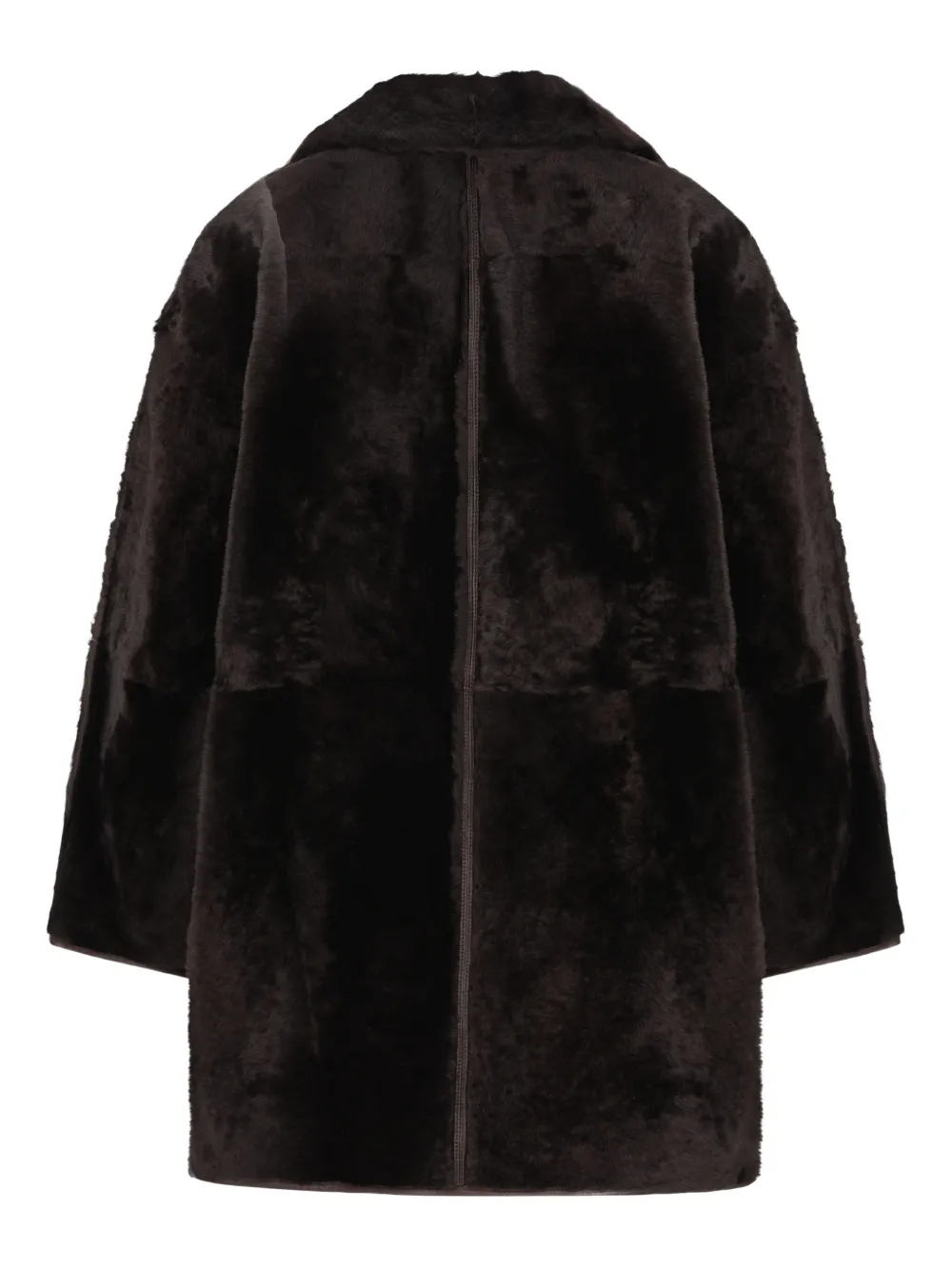 Коричневая отделка из кожи, передние карманы, застежка на пуговицы, длинные рукава, воротник из овчины