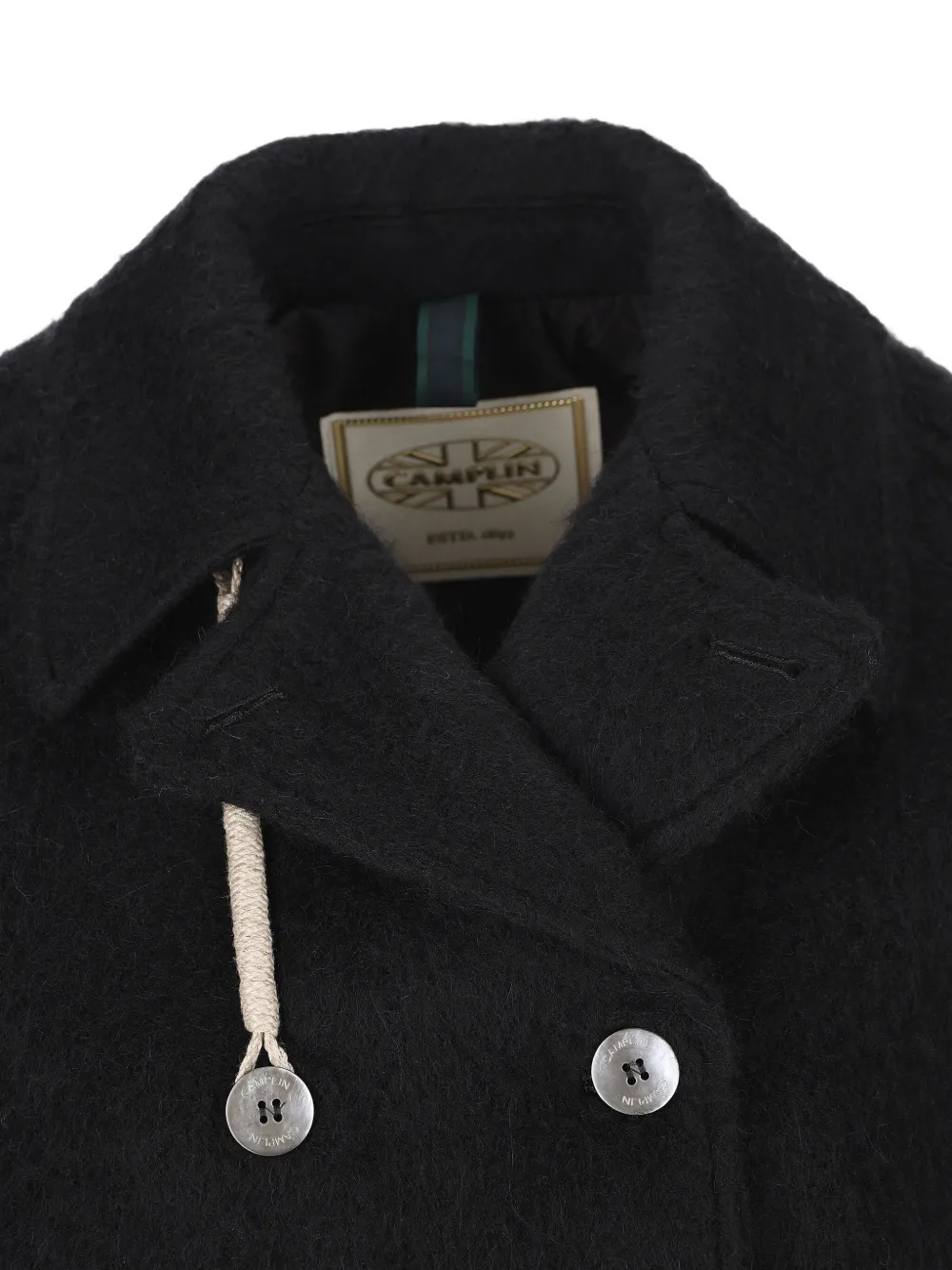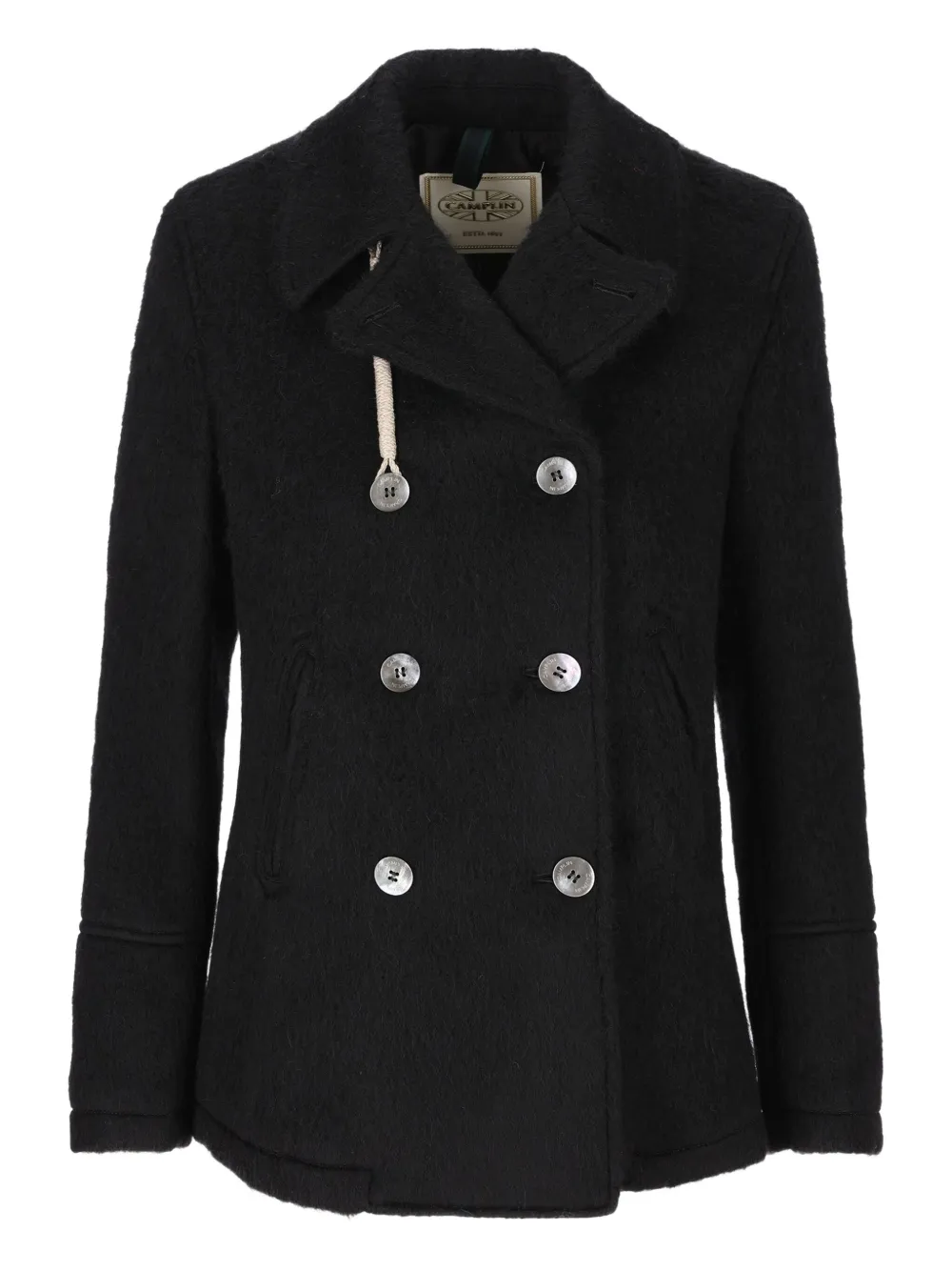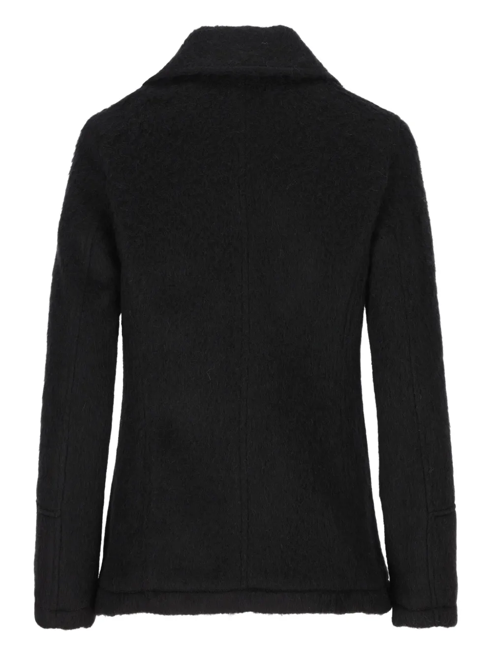 Черный двубортная застежка на пуговицы центральная задняя шлица прорезные карманы декоративная деталь из веревки длинные рукава