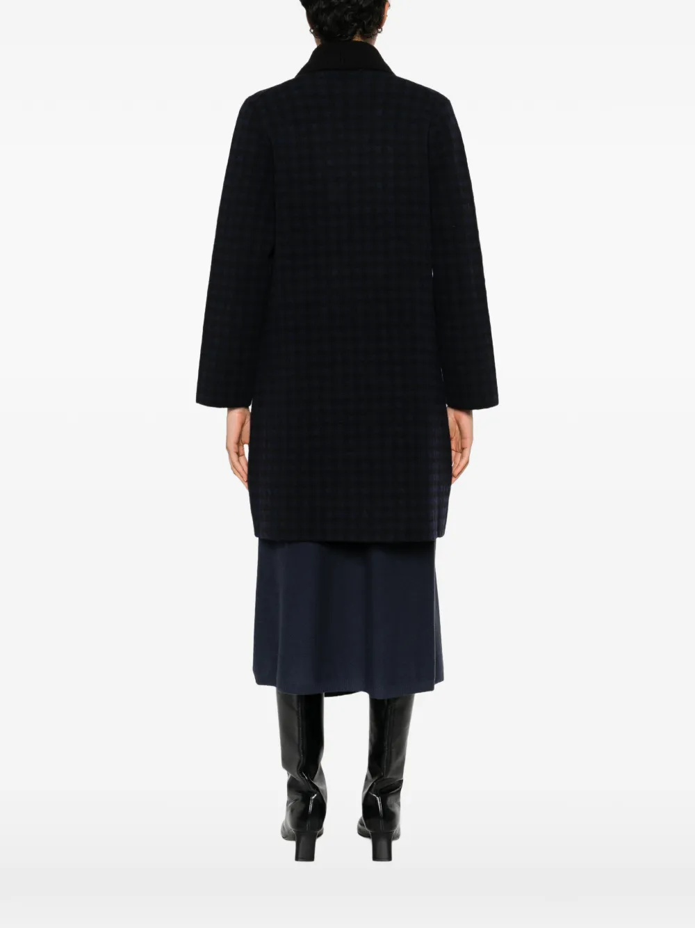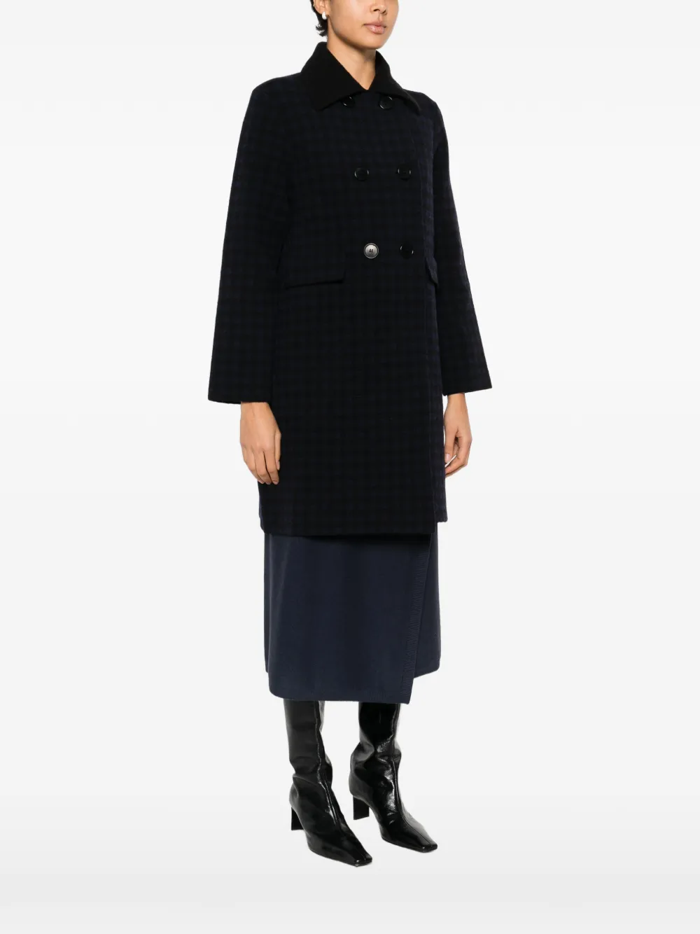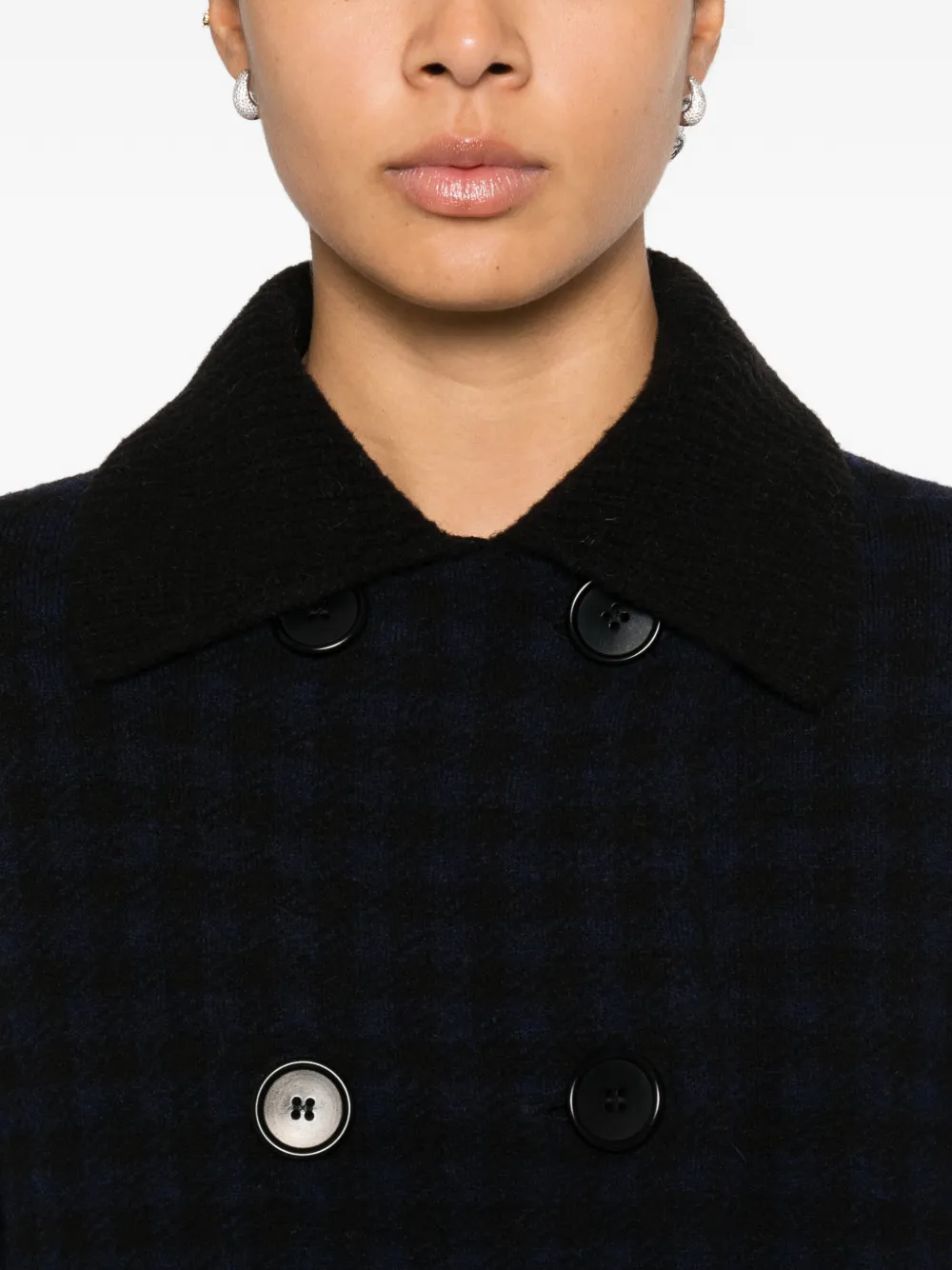 Черно-темно-синий в клетку, отложной воротник, двубортная застежка на пуговицы