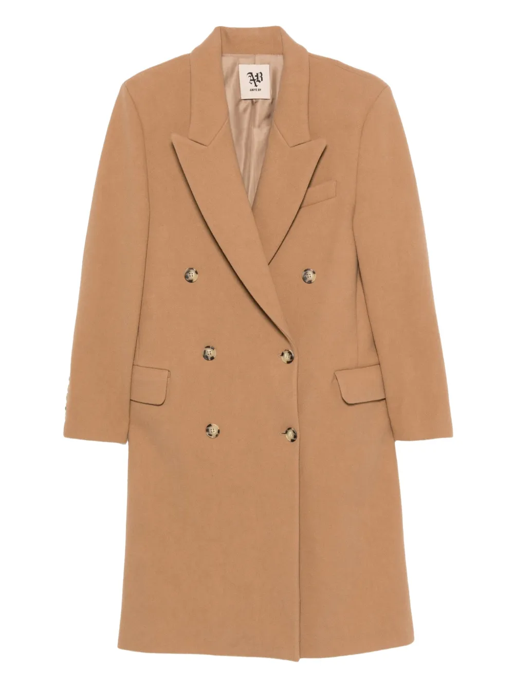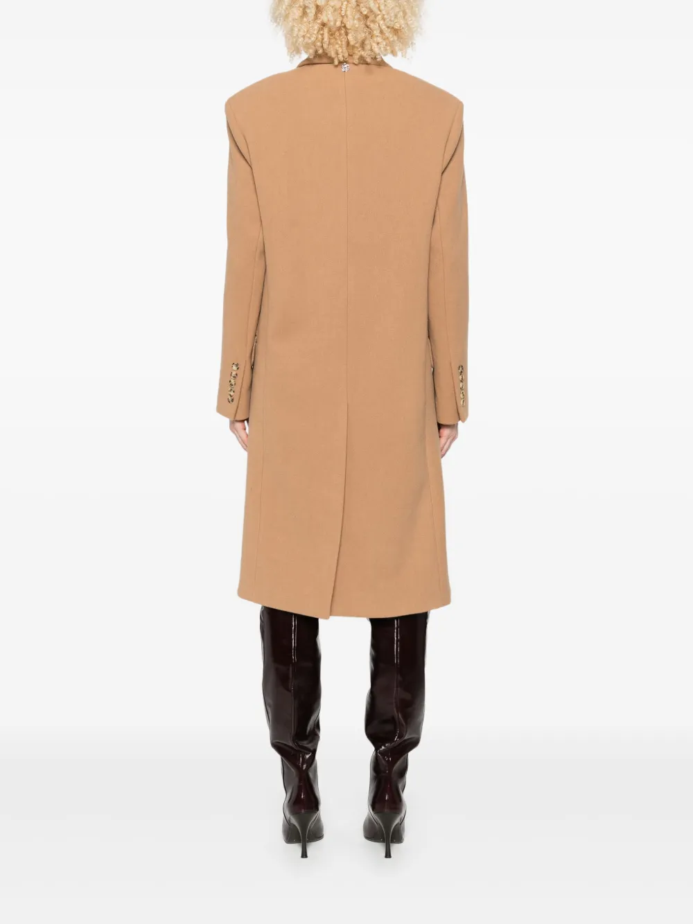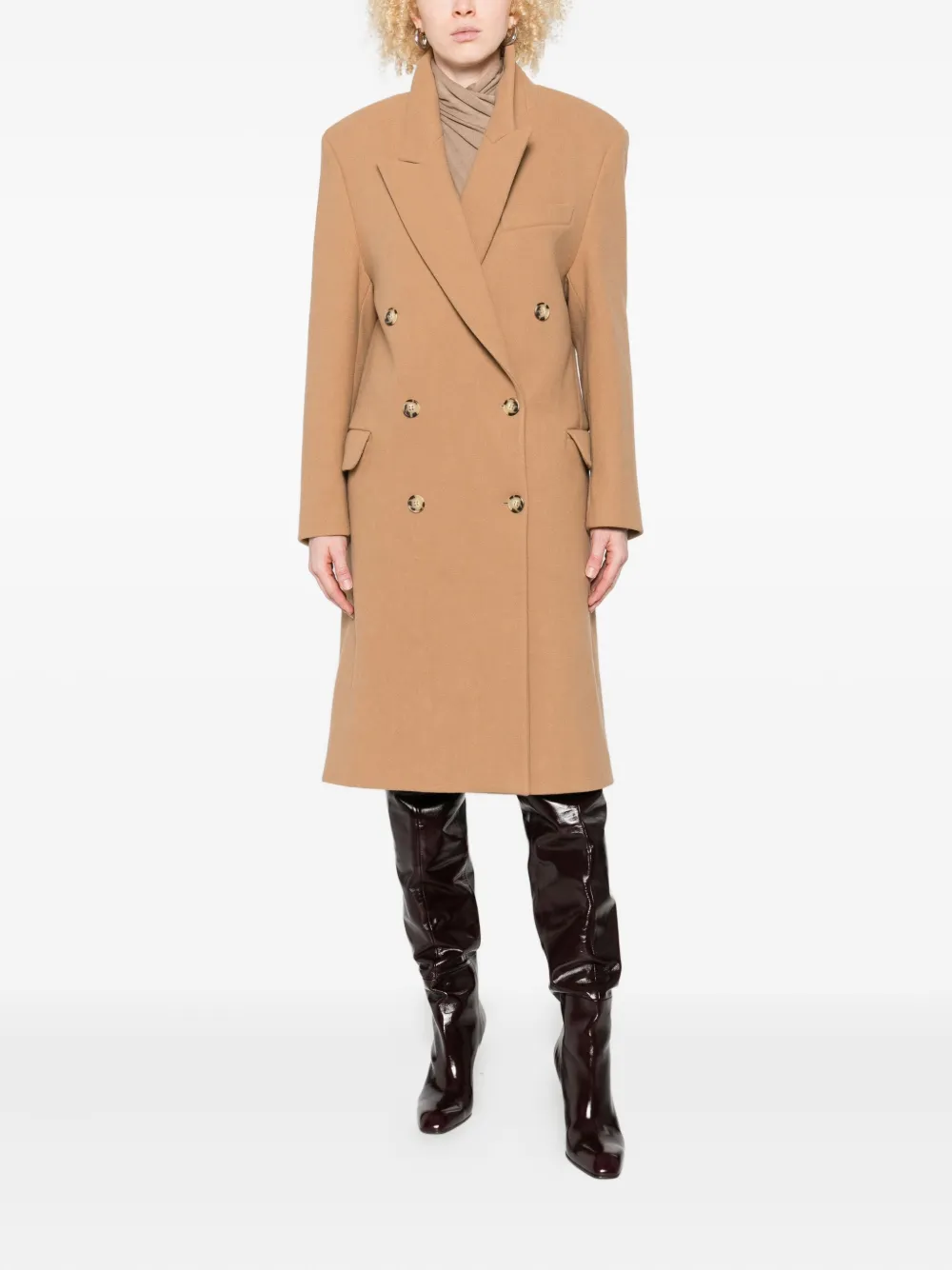 Верблюжий коричневый двубортная застежка лацканы с вырезом длинные рукава накладные карманы спереди