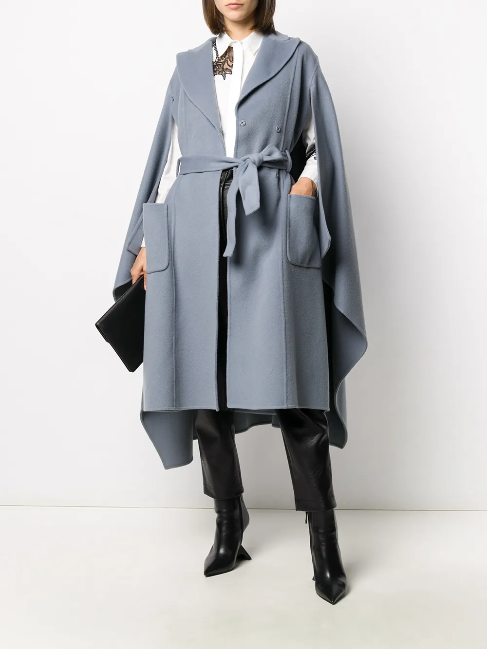 Двубортное пальто-кейп Alberta Ferretti, синий
