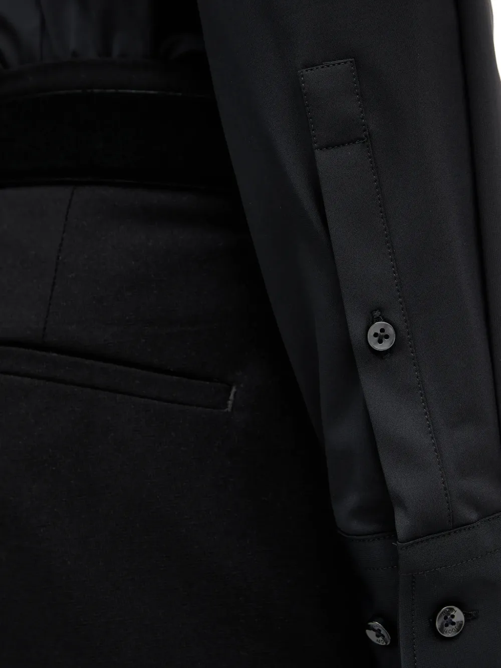 Черная застежка на пуговицы, манжеты на пуговицах, нагрудный карман