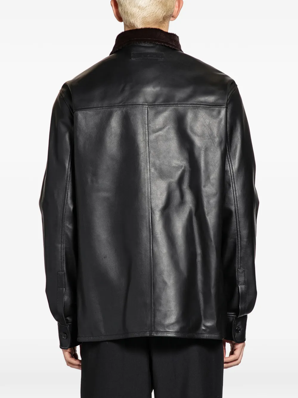 Кожаная рубашка с панелями и меховым воротником Marni, черный