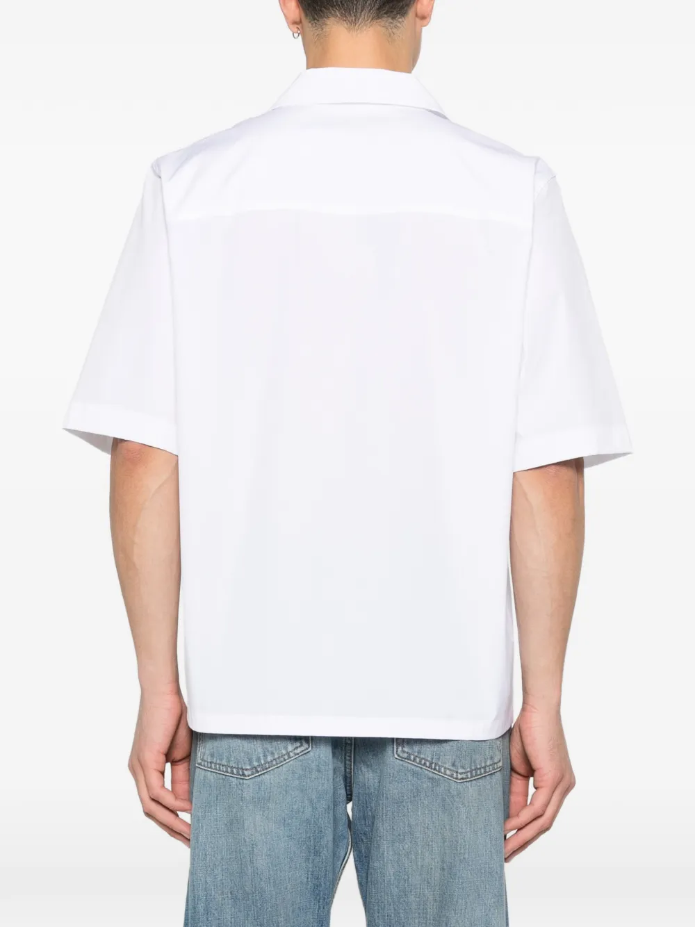 Белая рубашка с отложным воротником на пуговицах, короткими рукавами и нагрудным карманом