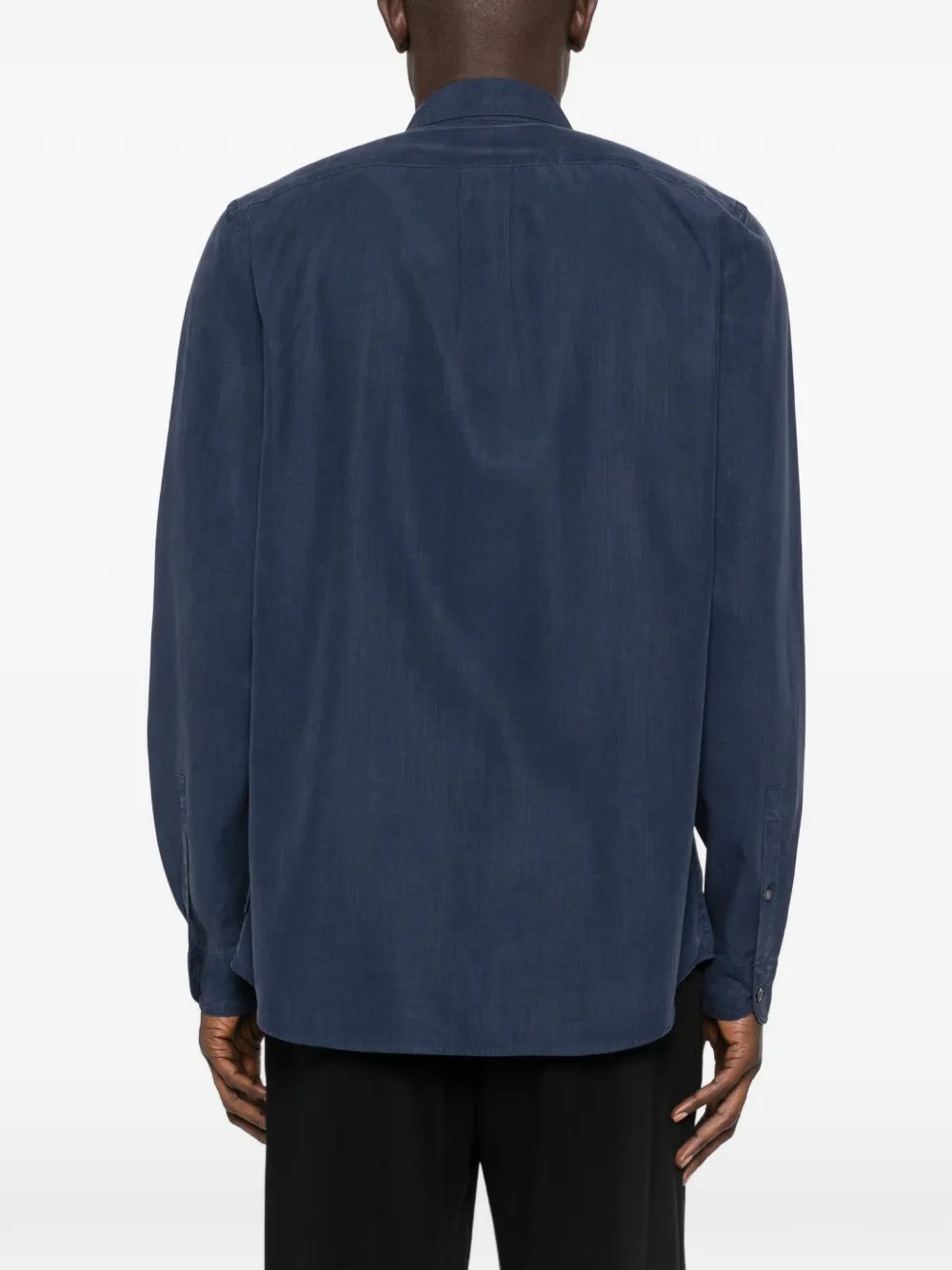 Синие с застежкой на пуговицы, длинные рукава, классический воротник