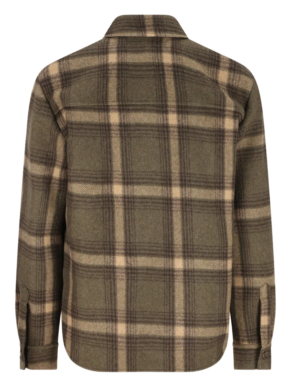Зеленый смесь шерсти клетчатый узор застежка на пуговицы накладной карман длинные рукава