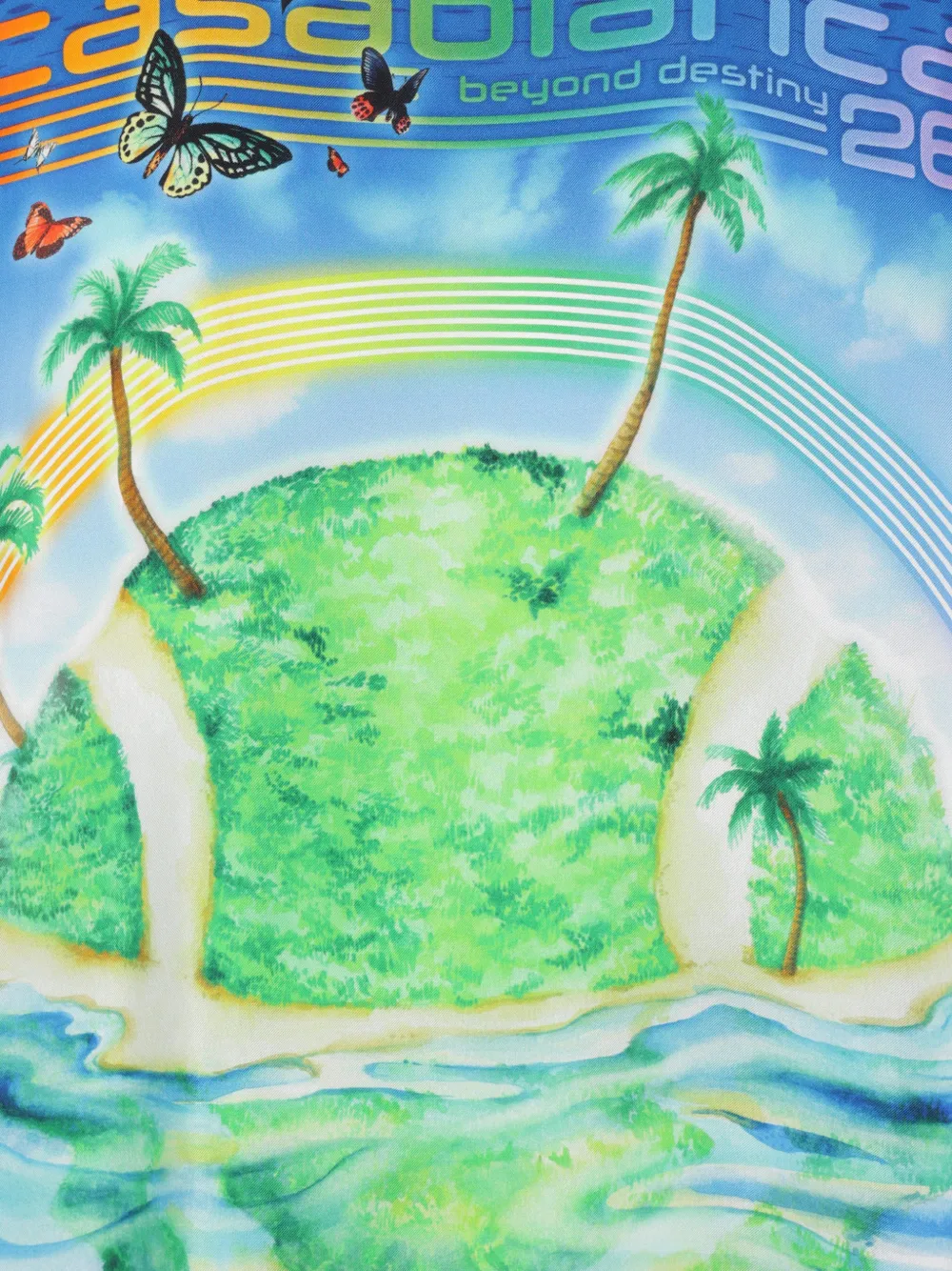 Синий разноцветный графический принт, короткие рукава, застежка на пуговицы, отложной воротник