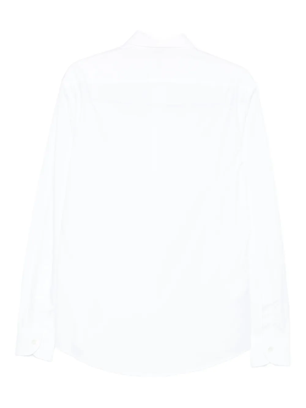 Белая рубашка с застежкой на пуговицы, длинными рукавами, отложным воротником и закругленным подолом