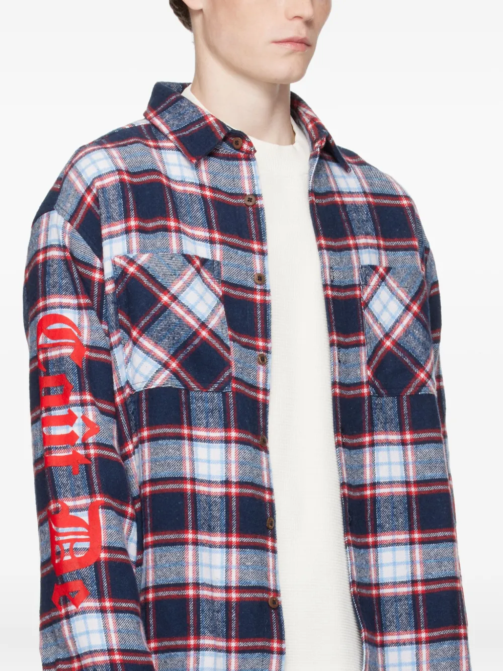 Синий в клетку, нагрудные карманы, застежка на пуговицы, длинные рукава