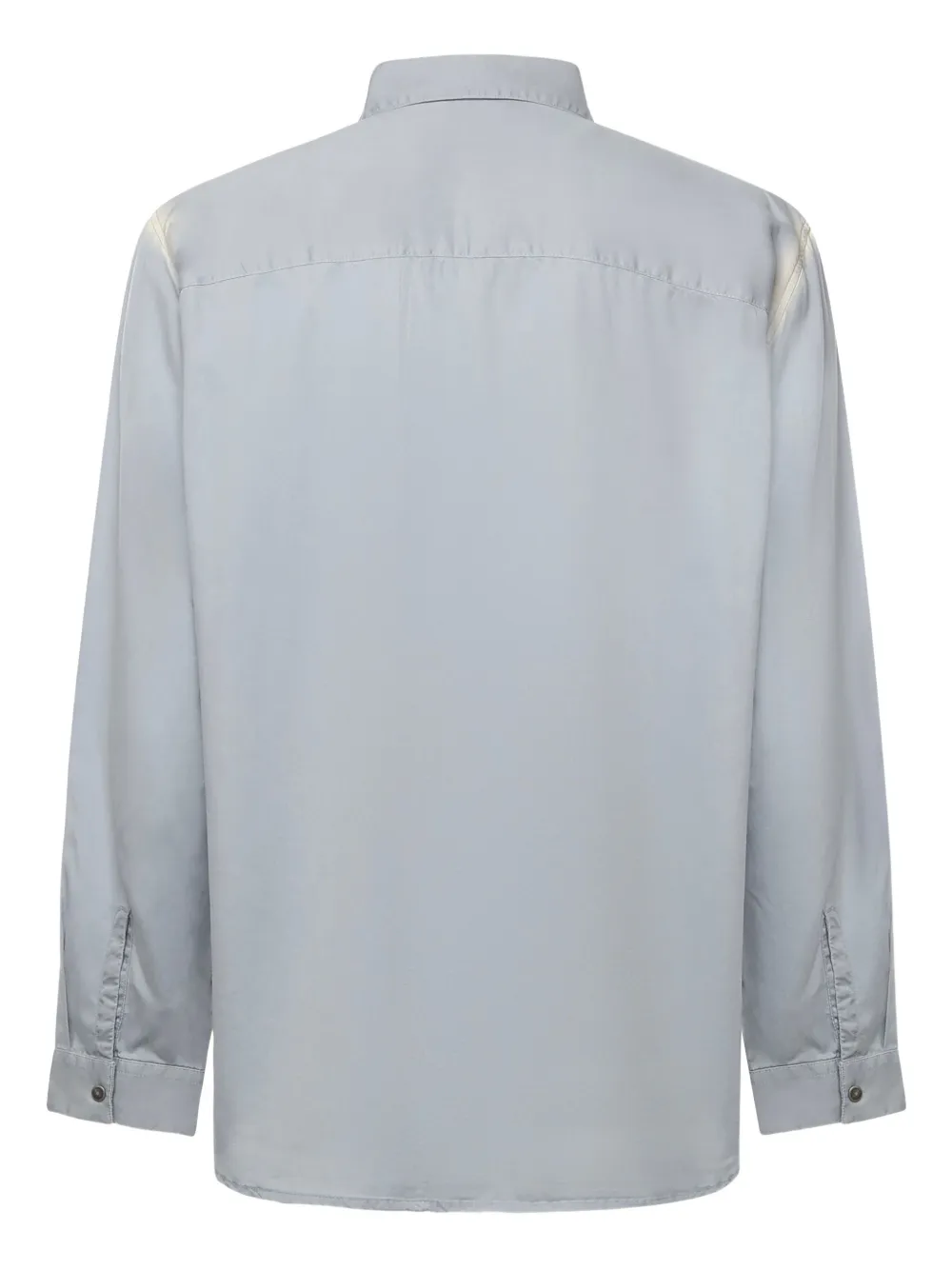Серый цвет, логотип, застежка на пуговицы спереди, длинные рукава, манжеты на пуговицах, отложной воротник