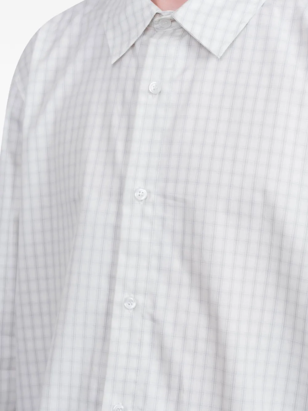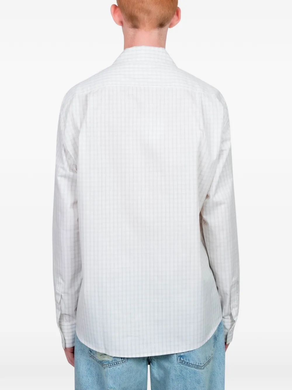Белая рубашка в клетку с длинными рукавами, застежкой на пуговицы и классическим воротником