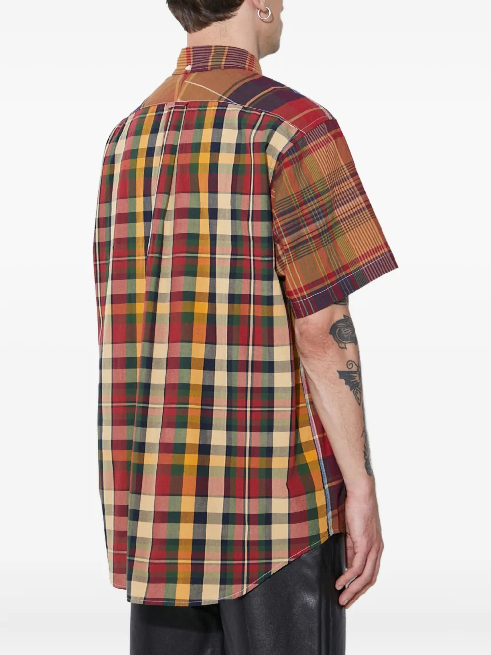 Красная/разноцветная рубашка в клетку с нагрудным карманом, короткими рукавами и застежкой на пуговицы